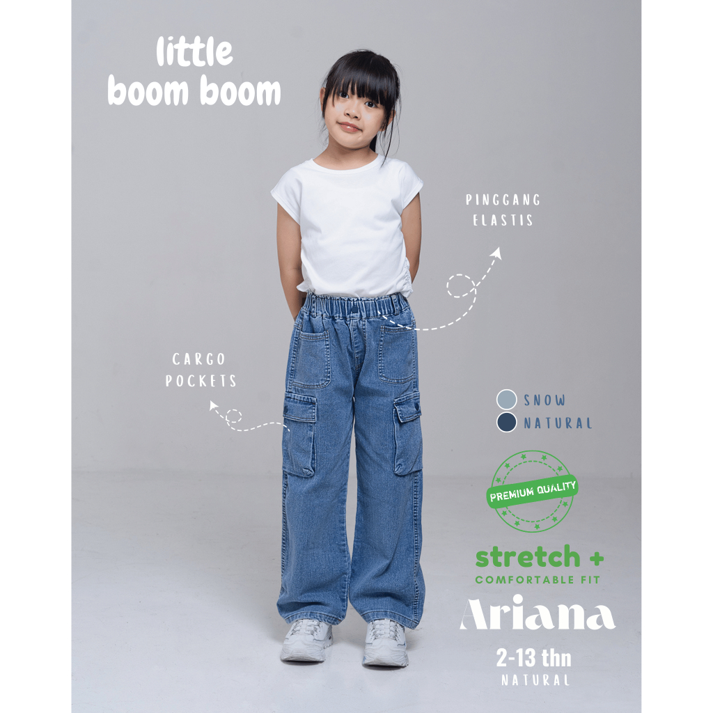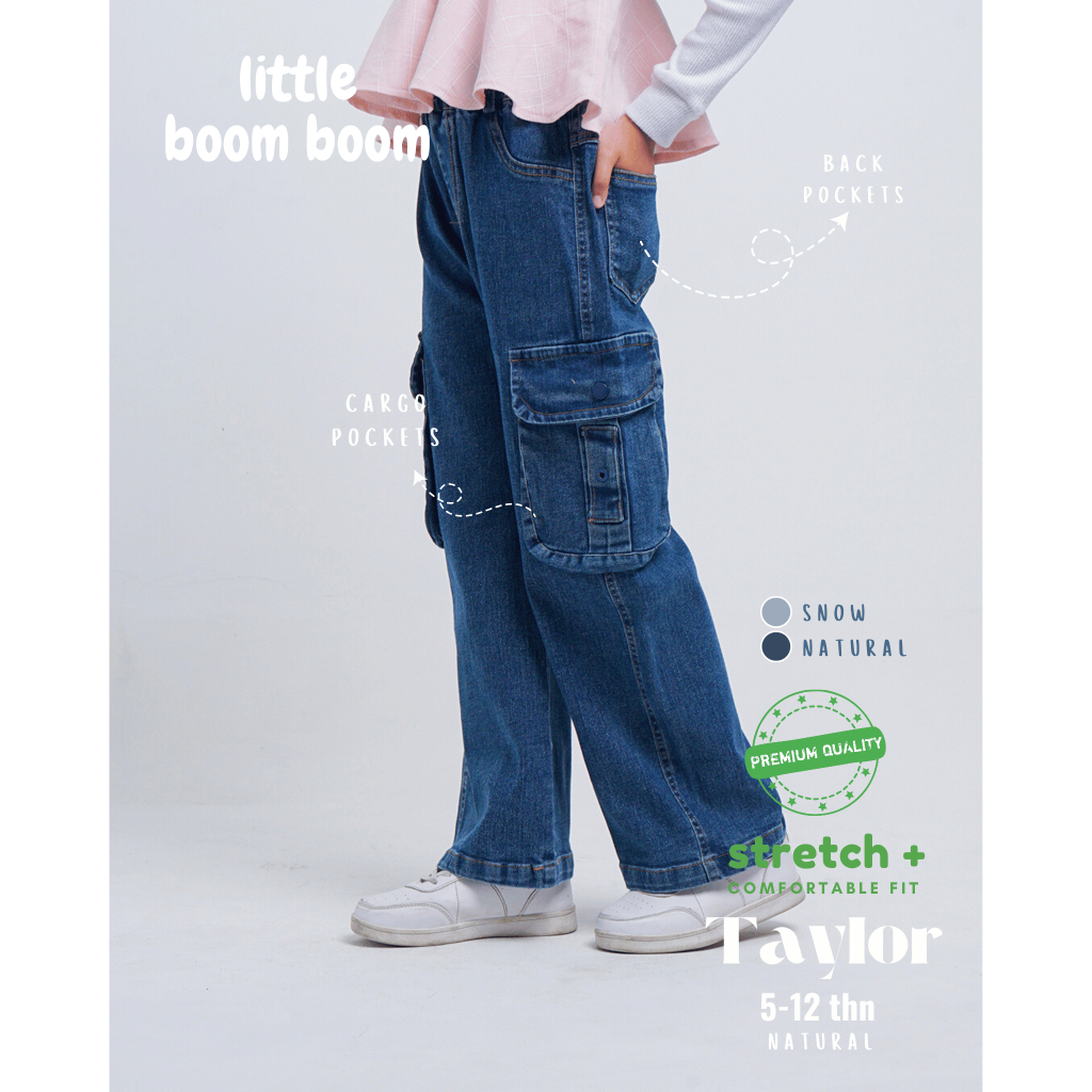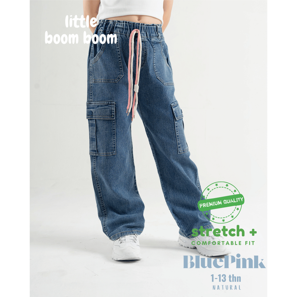 Little Boom Boom - Celana Panjang Kargo Anak Perempuan Jeans Highwaist 1-12Tahun