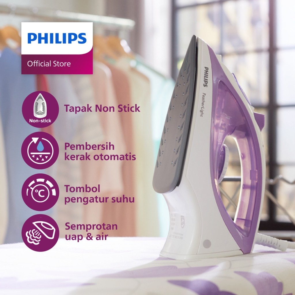 Philips Setrika Uap GC1418/35 Ungu - Setrika Uap Optimal, Tapak Non-Stick, Setrika Uap