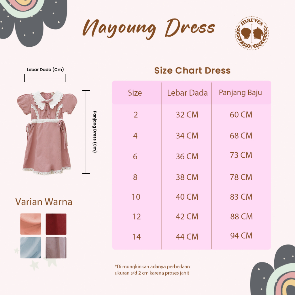 Marves Nayoung Dress Baju Anak Perempuan Bahan Linen Korean Style Usia 1 Hingga 14 Tahun
