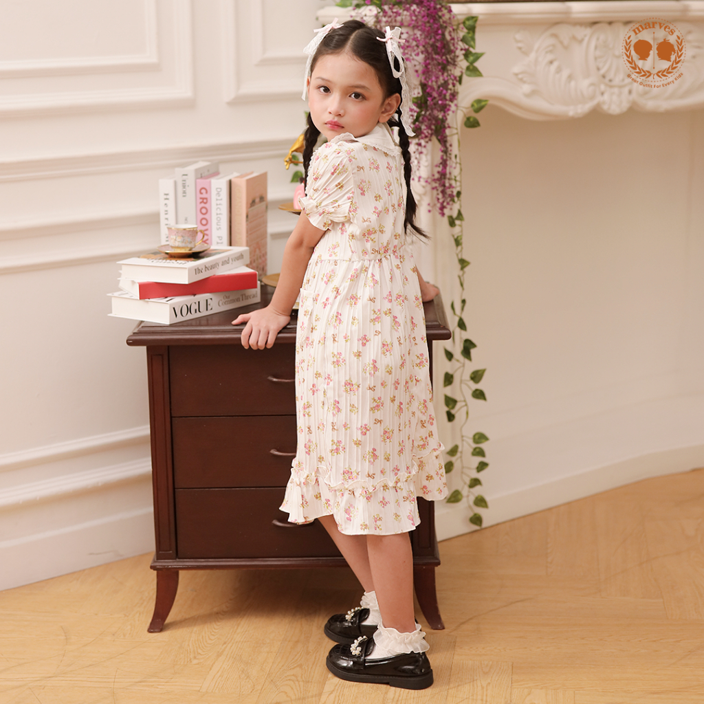 Marves Olivia Korean Dress Baju Anak Perempuan Bahan Crinkle Motif Bunga Usia 1 Hingga 14 Tahun