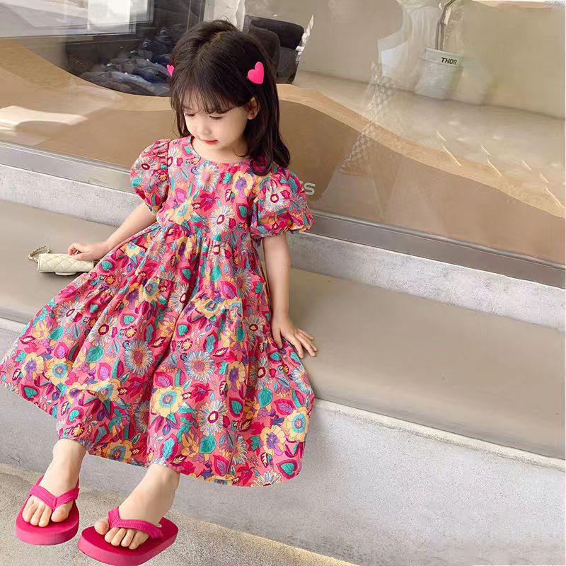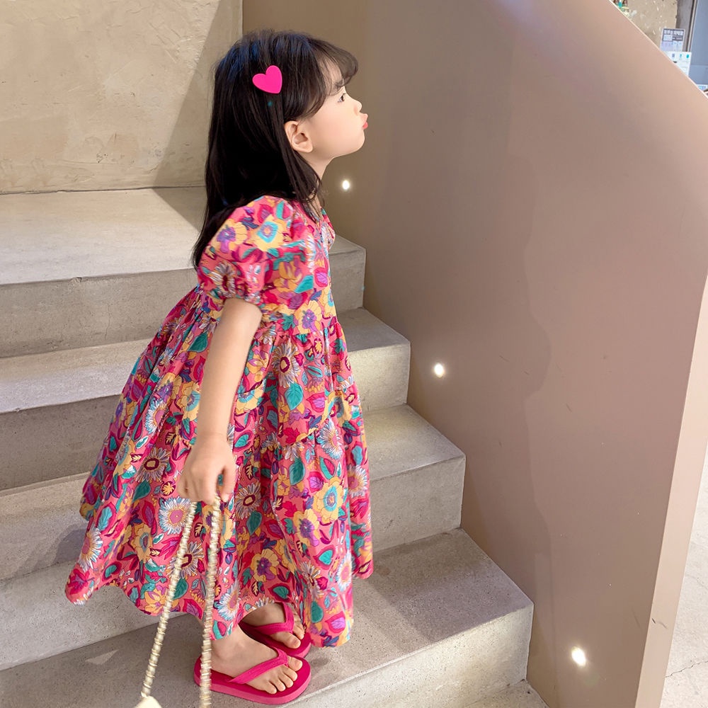 Haasya Kids 2-6 Tahun Gadis Gaun Bunga Musim Panas Anak-Anak Baru Bunga Lengan Pendek Gaun Putri Rok Katun Bayi