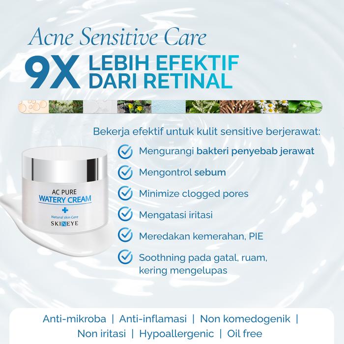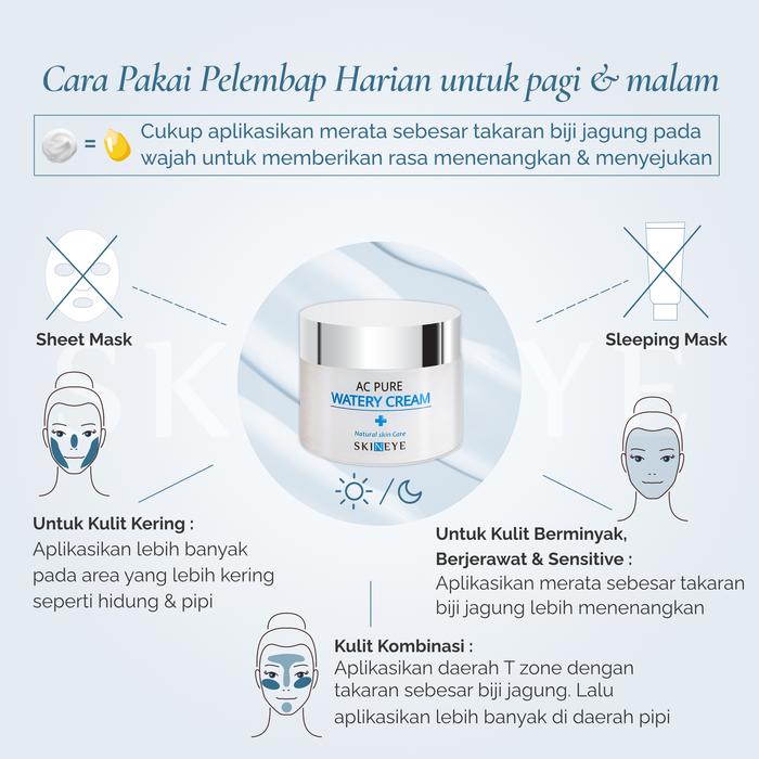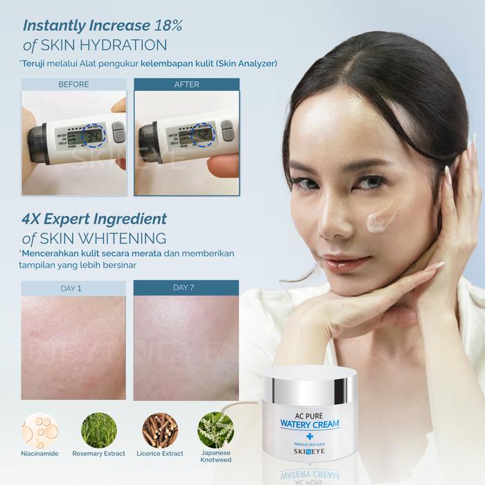 SKINEYE | AC PURE WATERY CREAM 50ML MOISTURIZER UNTUK SEMUA JENIS KULIT, SENSITIF BERJERAWAT, DAN PELEMBAB
