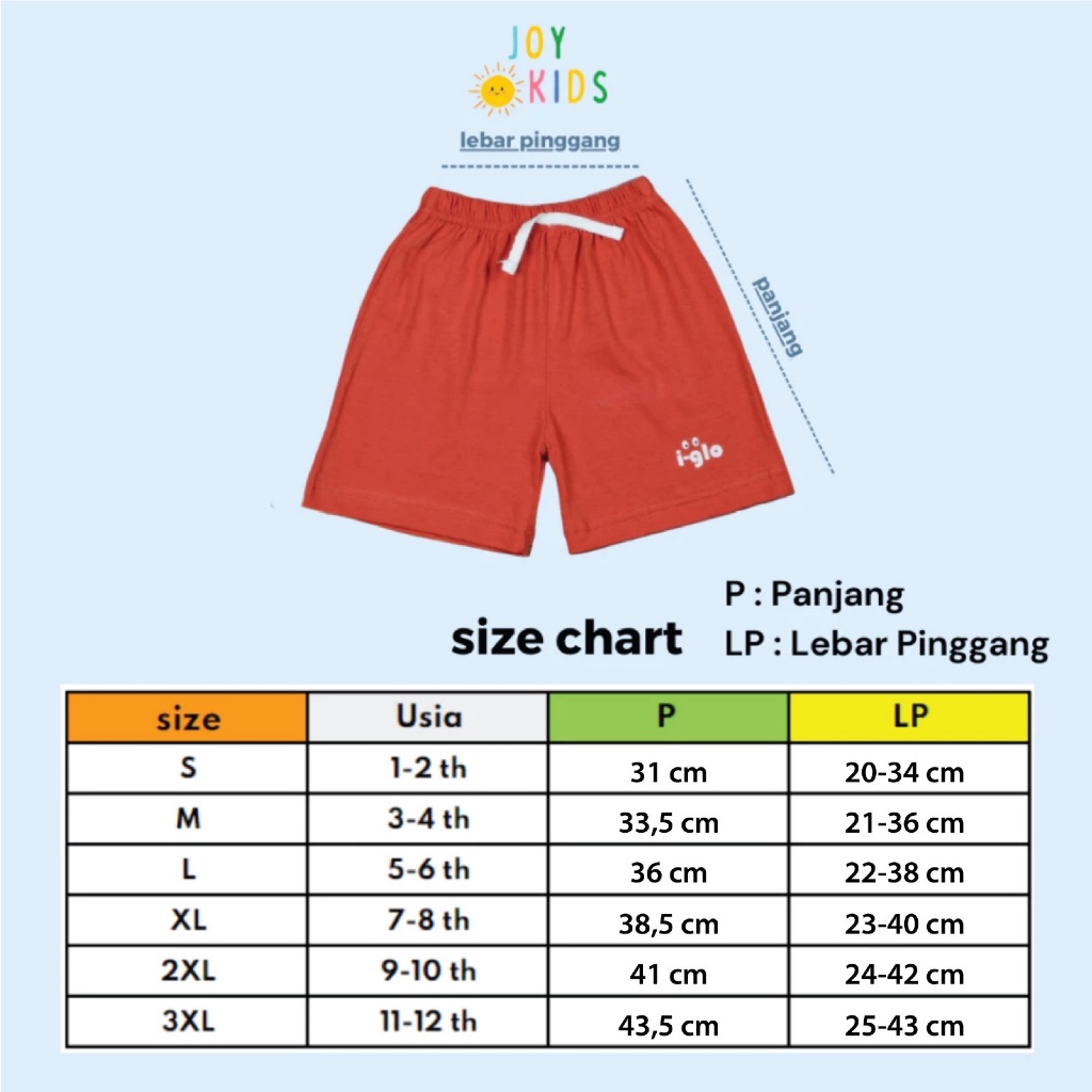 Joy Kids Celana Pendek Anak Cewe Cowo Sablon 1-12 Tahun