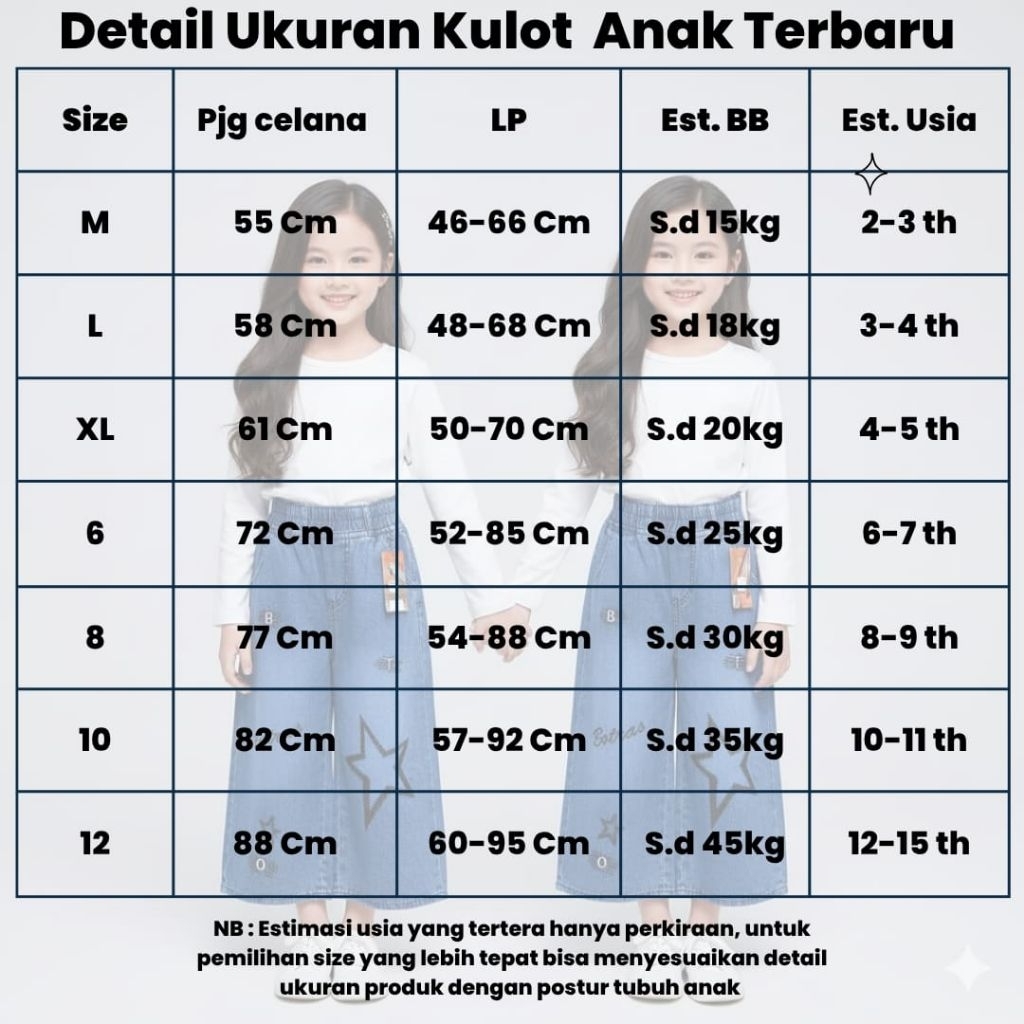 Kulot Kore Style Anak Perempuan 2-14 Tahun//Celana Kulot Anak Perempuan//Celana Jeans Anak Perempuan