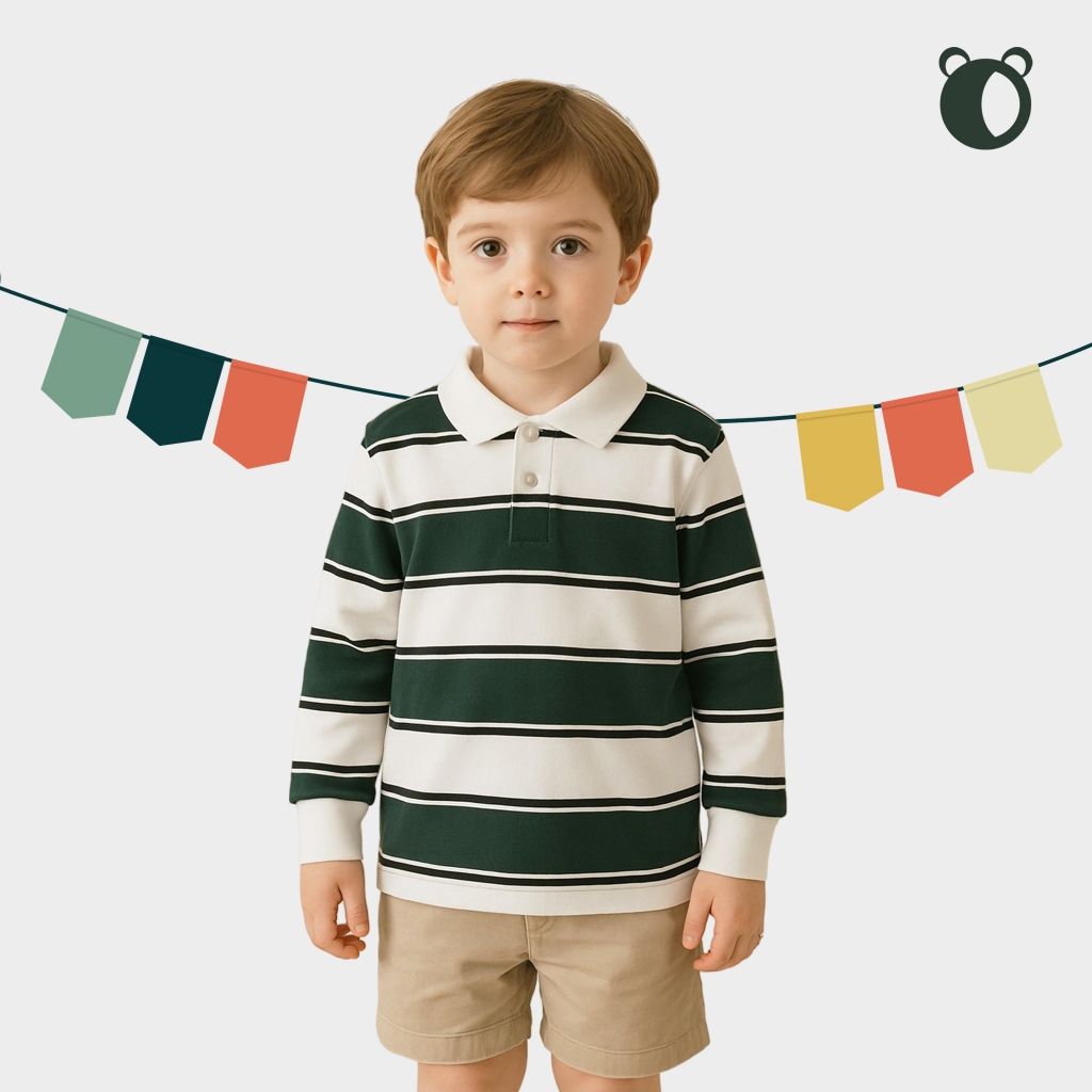 Kuokabasic Kaos Rugby Anak Lengan Panjang | Baju Stripe Anak | Baju Rugby Anak | Kaos Kerah Anak 24S
