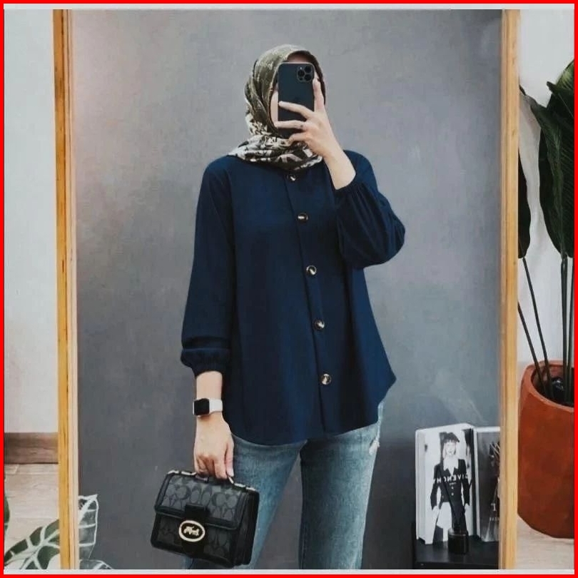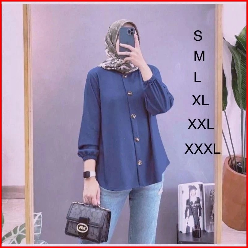 Baju Kemeja Wanita Lengan Karet Bahan Airflow Kemeja Kekinian Kemeja Blouse