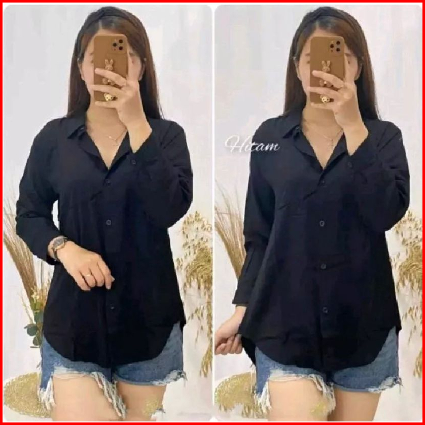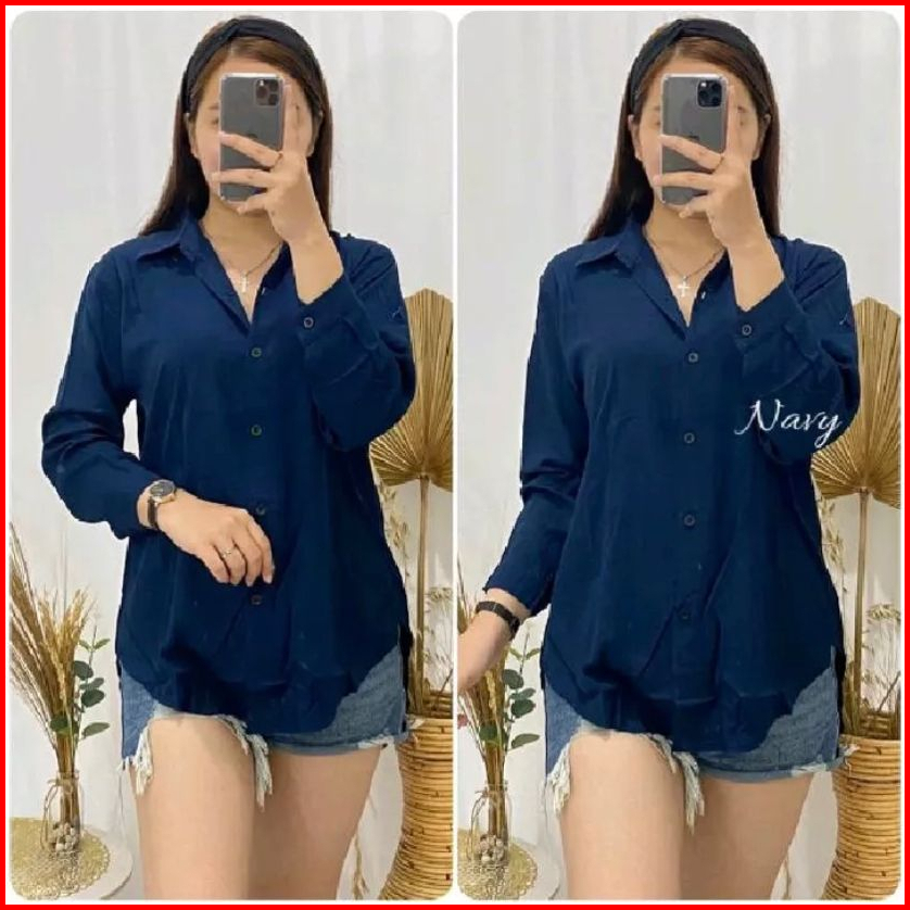 Kemeja Wanita Crinkle Atasan Wanita Polos Lengan Panjang Terbaru Kekinian Terlaris