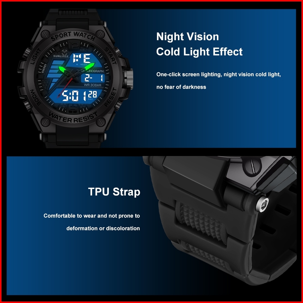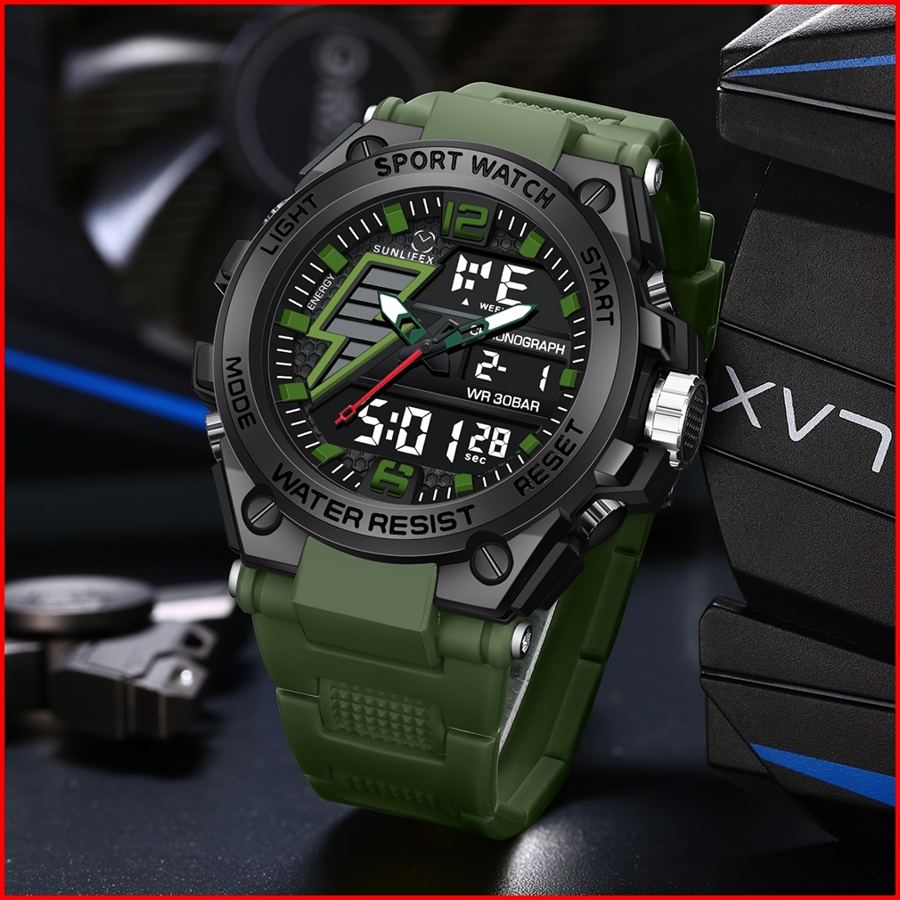 Sunlifex Jam Tangan Pria D004 Digital Analog Multifungsi Olahraga Tali Silikon Jam Tangan Cowok