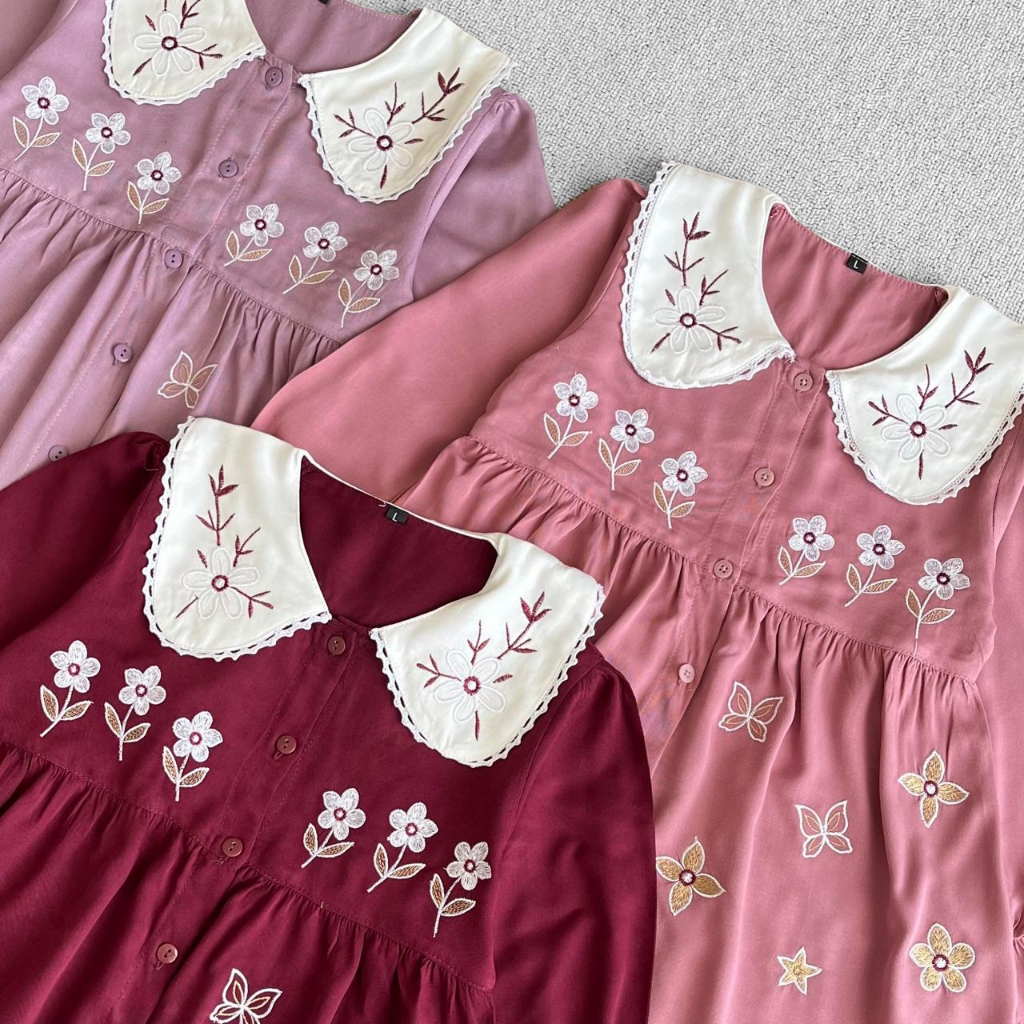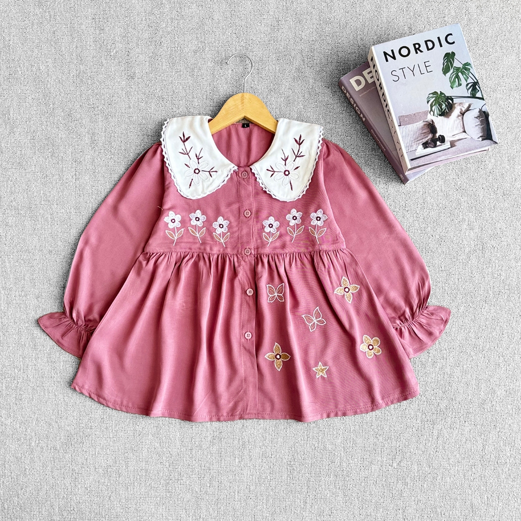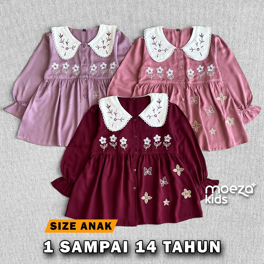 Leona Blouse Atasan Anak Perempuan Lengan Panjang Dengan Bordir Bunga Dan Kerah Motif Baju Anak Stylish Casual Elegan Ou