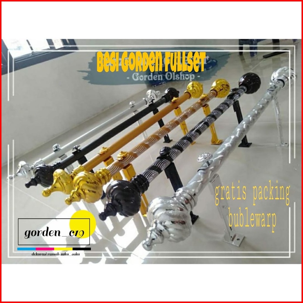 Besi Gorden Full Set Gratis Packing Buble Warp Batang Gorden Tiang Gorden Rollet Gorden Motif Uril Polos Ukuran 100cm 12
