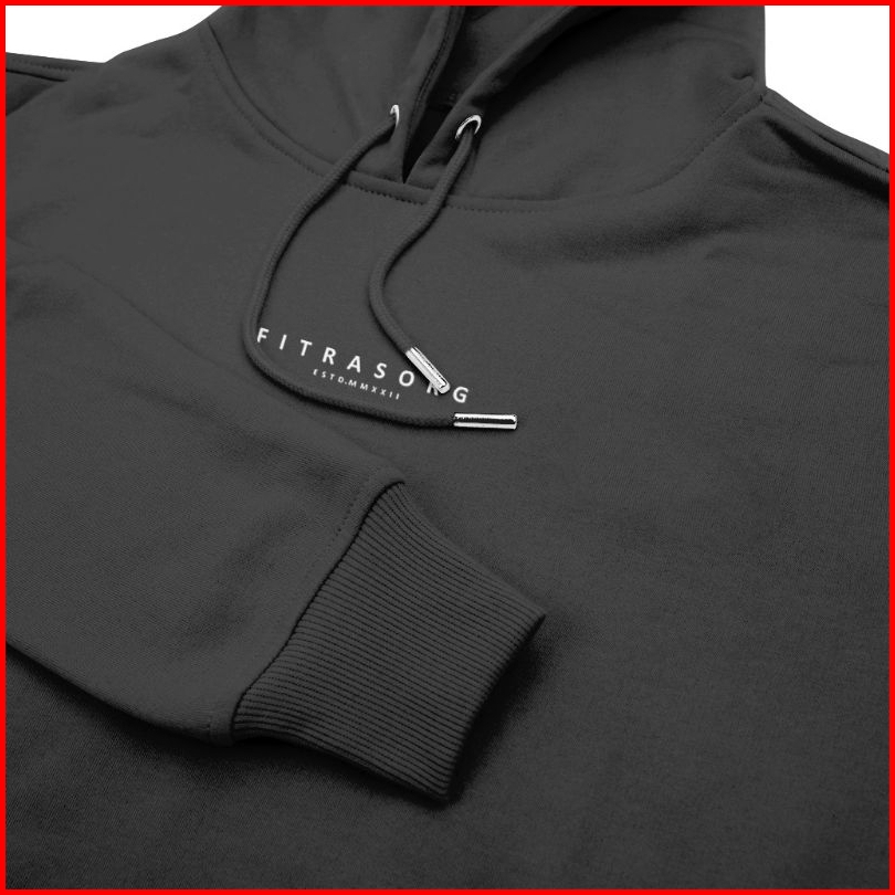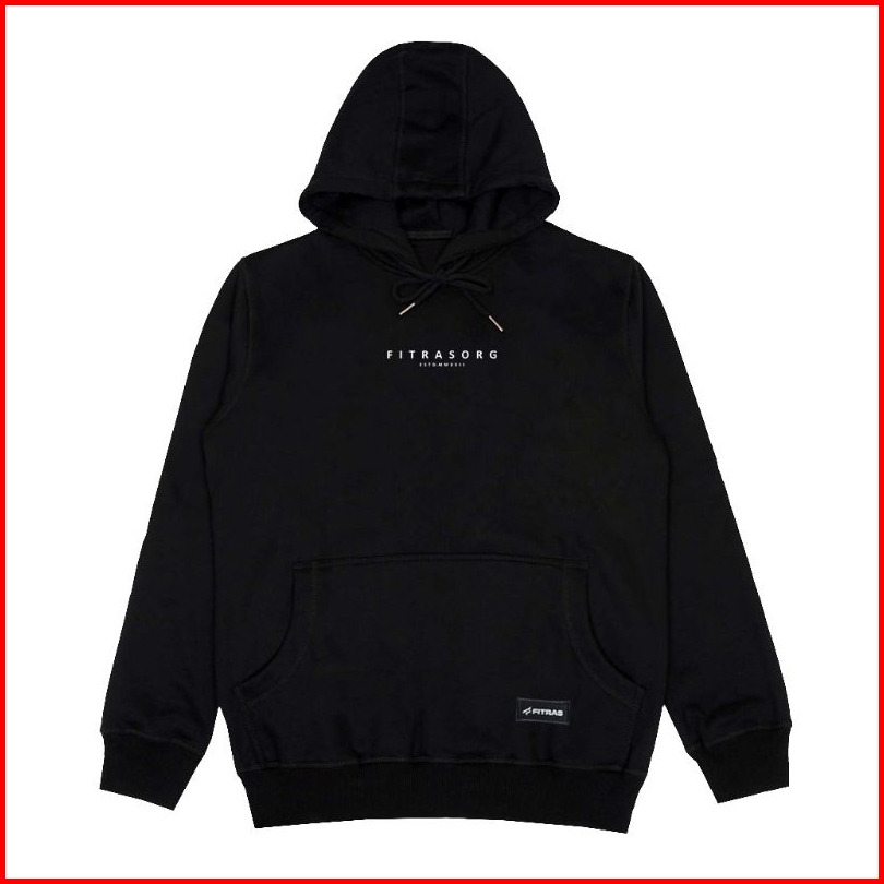 Fitras - Hoodie Pria Font Small Black Simple Bahan Fleece Premium