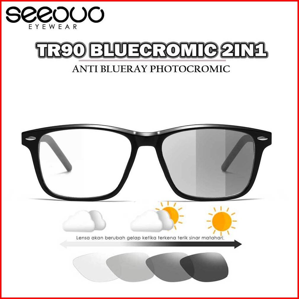 Seeouo Kacamata Bluecromic Antiradiasi Blueray Photocromic Model Kotak Fashion Style Tr90 Ringan Pria Wanita Bisa