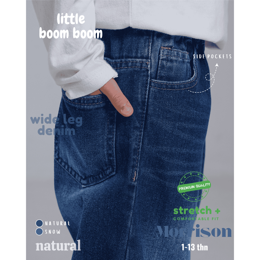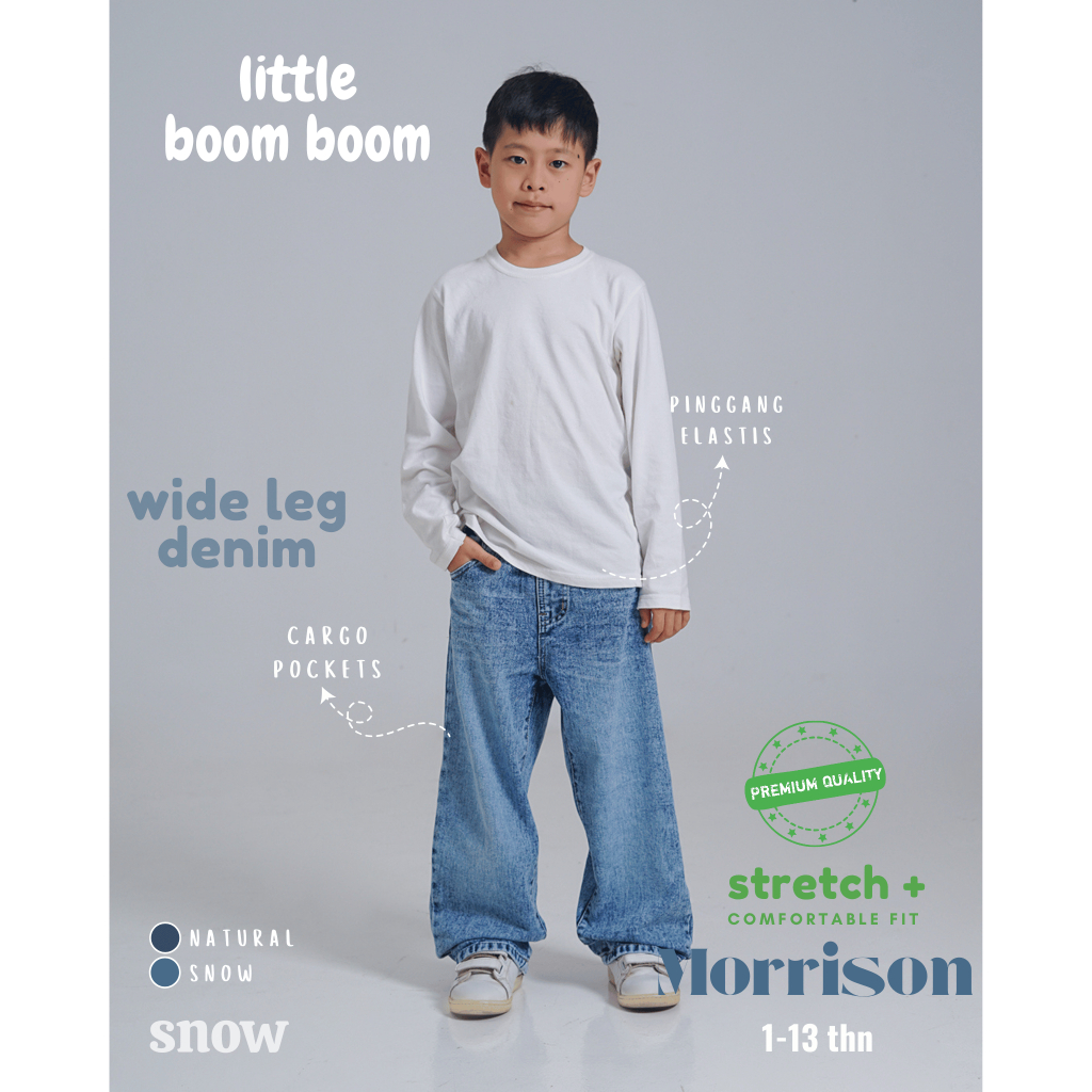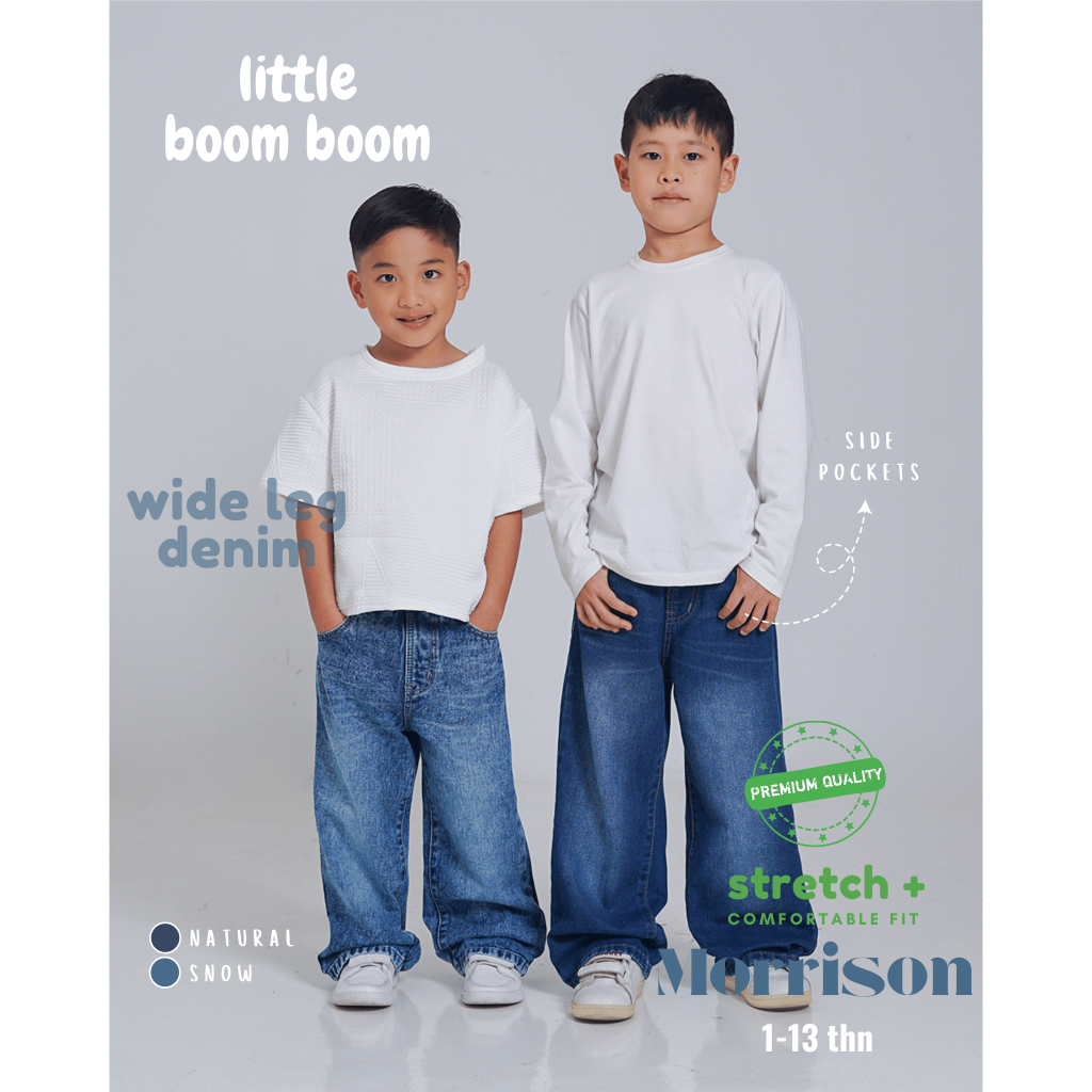 Little Boom Boom - Celana Panjang Skena Jeans Anak Laki Laki Wide Loose Fit 5-11 Tahun Premium Wash