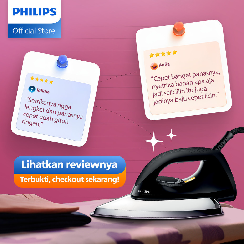 Philips Setrika kering HD1173/80 Hitam, Ceramic 4 Lapis, Anti-Lengket, seterika philips,gosokan baju