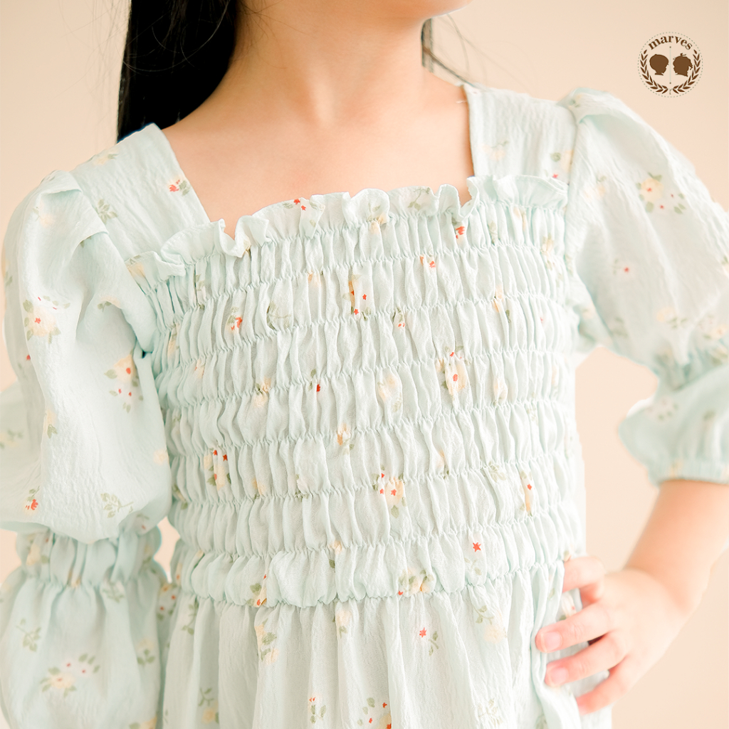 Marves Shasa Dress Anak Perempuan Korean Style Bahan Crinkle Motif Bunga Usia 2 Hingga 14 Tahun