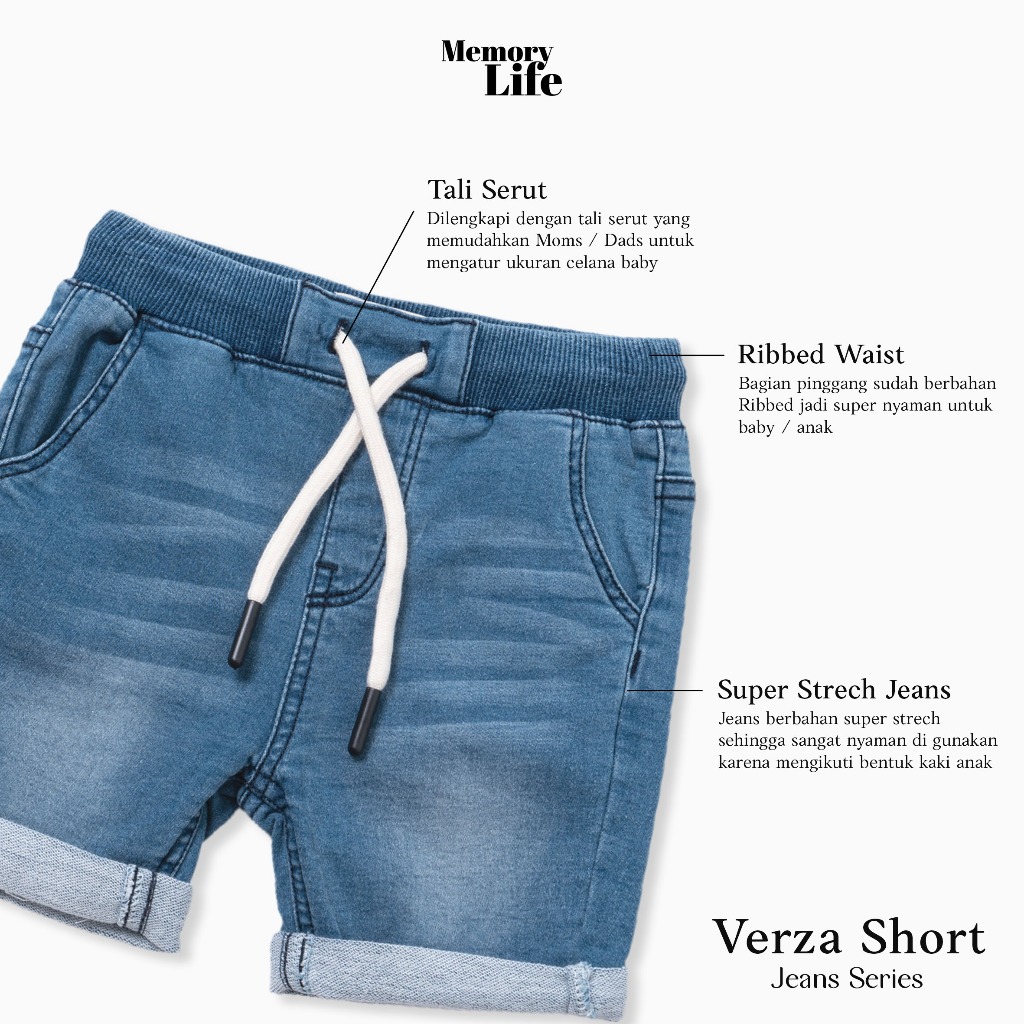 Memorylife - Verza Short Jeans Series | Celana Pendek Jeans Premium Anak Unisex Umur 9 Bulan- 3 Tahun