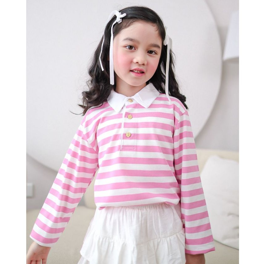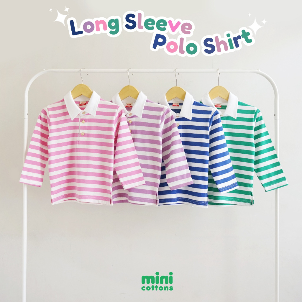 Mini Cottons Long Sleeve Polo Stripe Tshirt Lengan Panjang Polo Salur Anak Unisex 1-12 Tahun