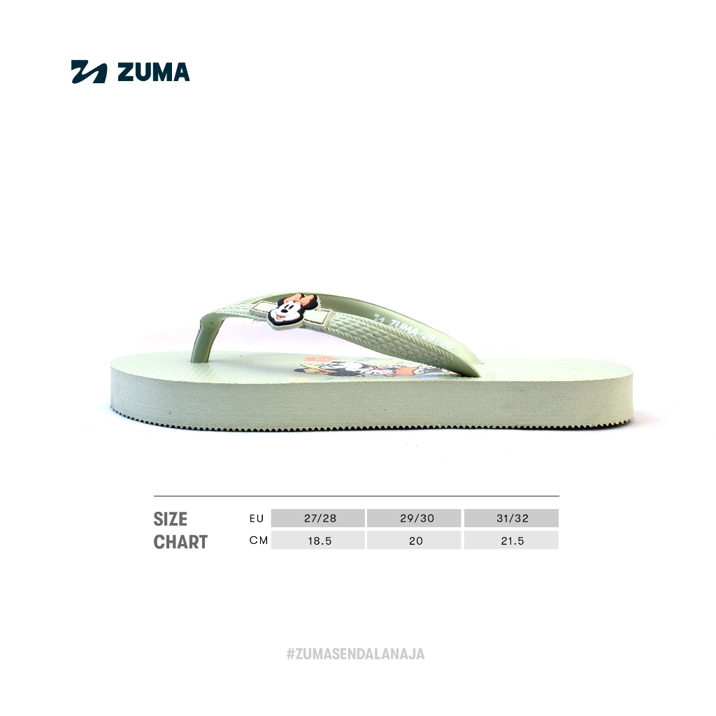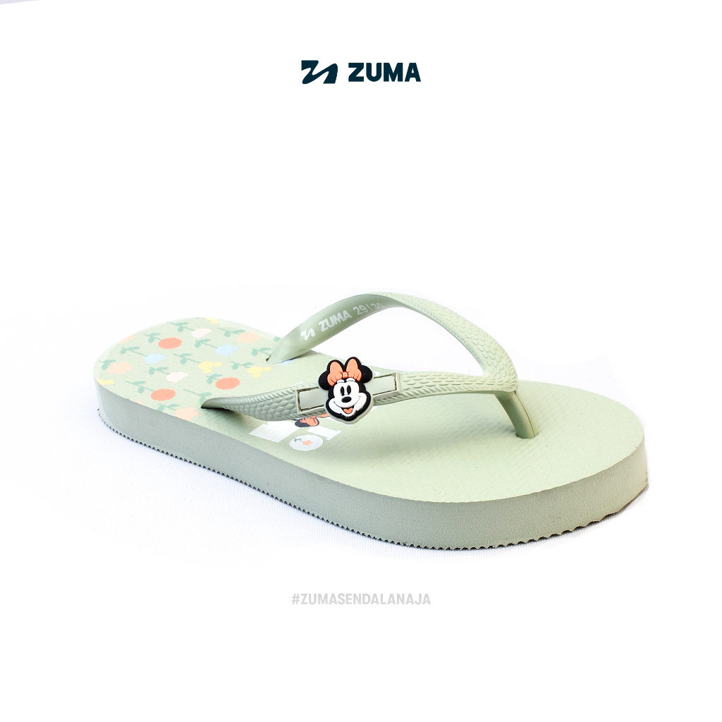 Minnie 2 Zuma Kids Girls Sage Green, Sandal Jepit Anak Perempuan Karet Karakter, Hijau