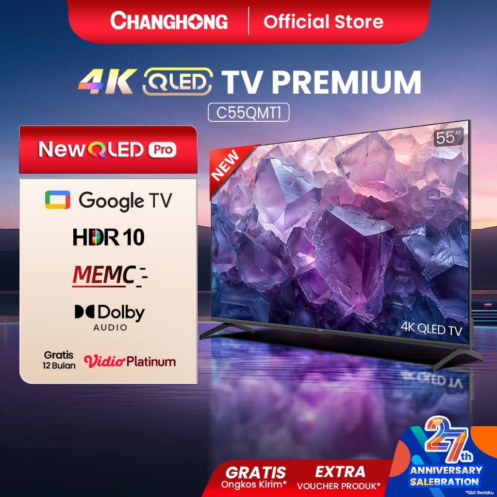 CHiQ by Changhong QLED TV 4K 55 inch Google Smart QLED PRO Digital TV Dolby Audio DBX-TV Google Play Netflix Youtube Bluetooth USB Google Assistant (C55QMT1)