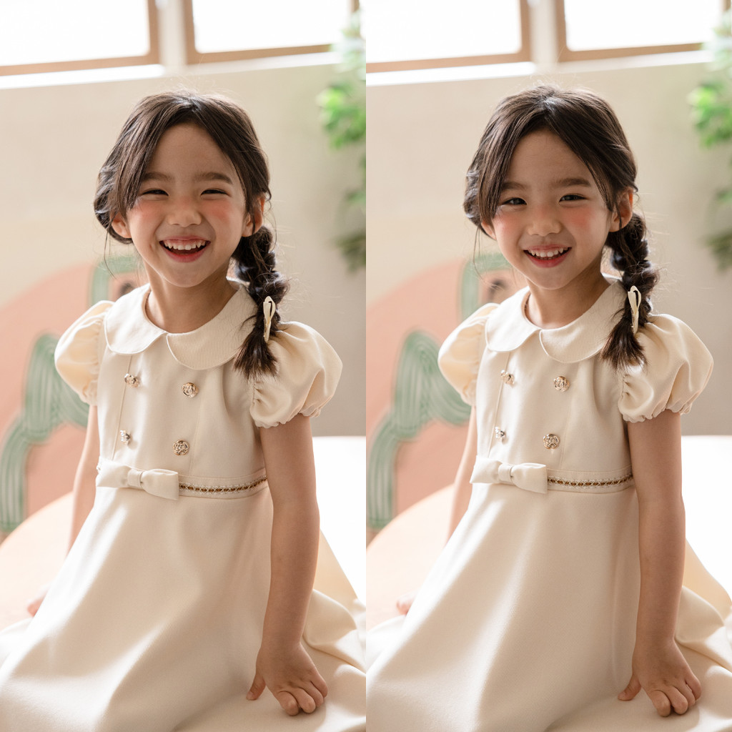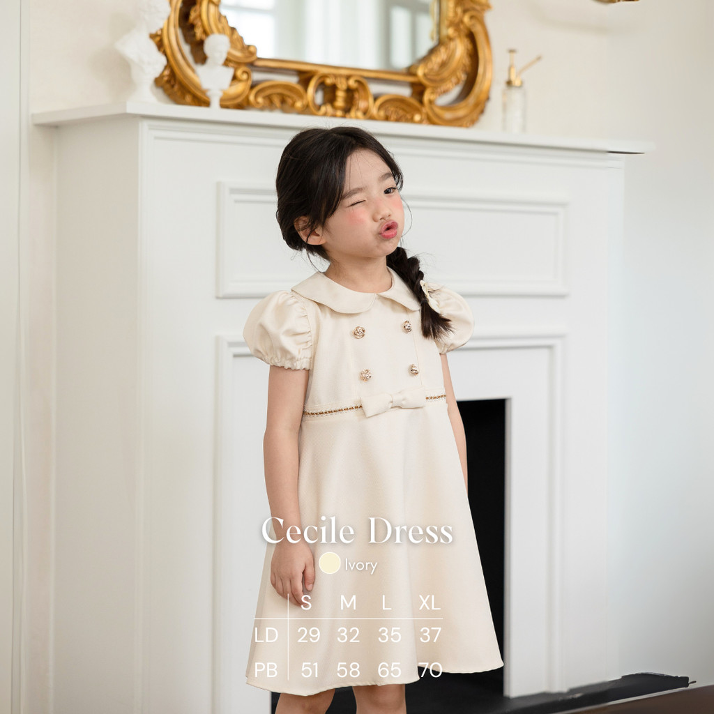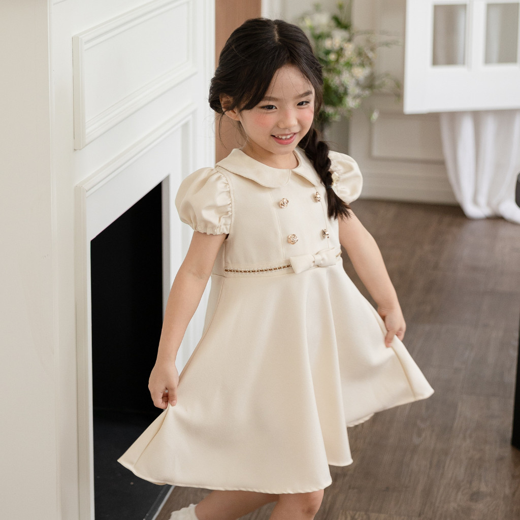 Moonjoy Cecile Dress - Dress Anak Perempuan Pesta Ulang Tahun Pita Casual Ivory Cream Petite Versailles