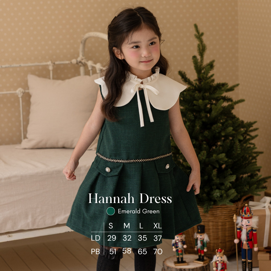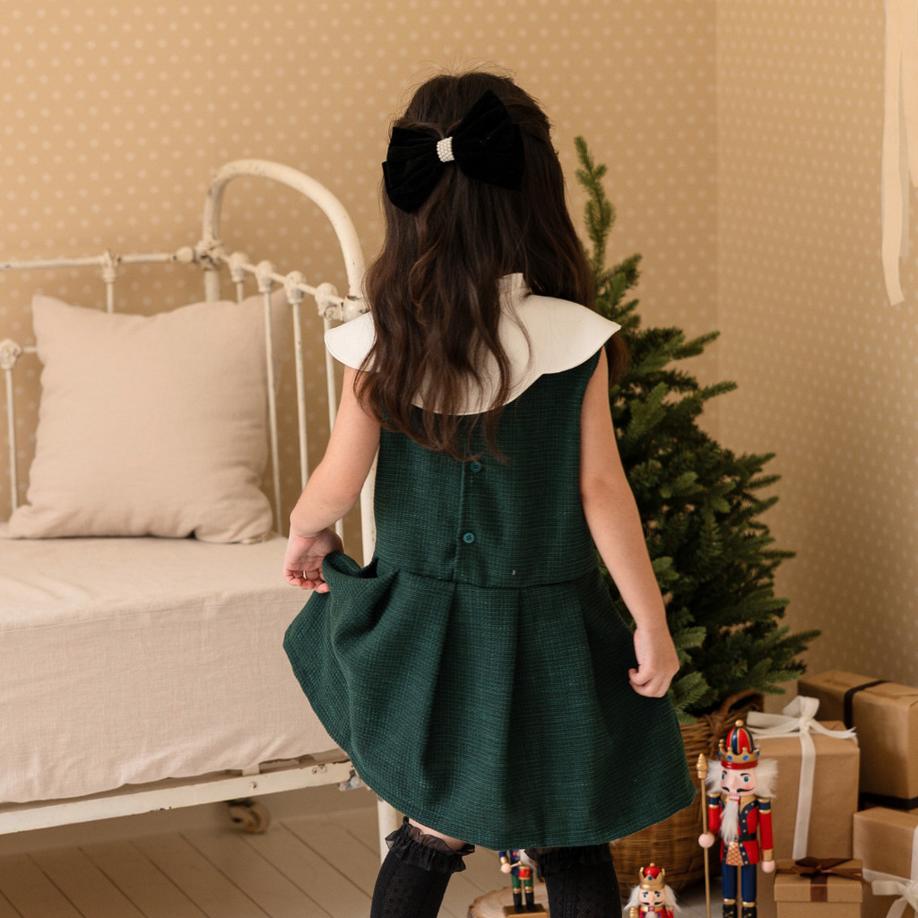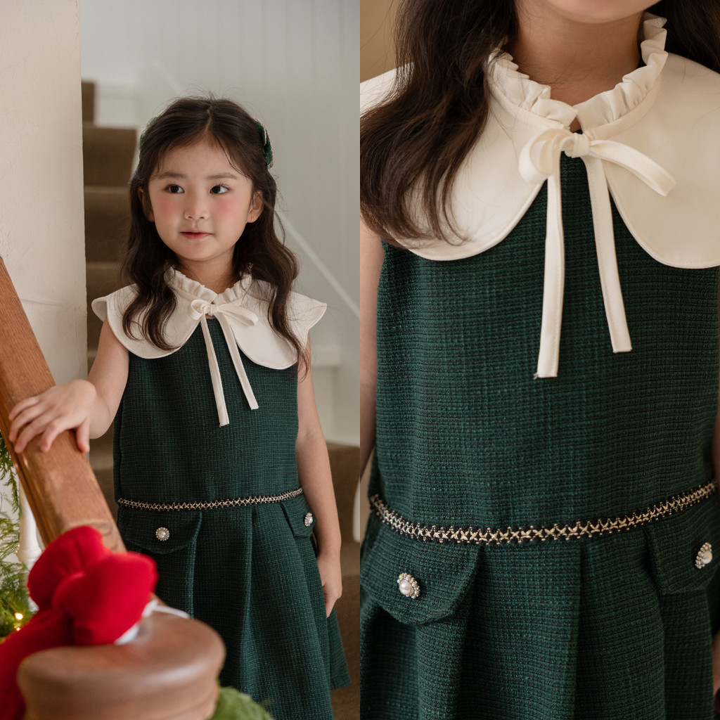 Moonjoy Hannah Tweed Dress - Dress Anak Perempuan Tweed Emerald Green Korean Style Dress Christmas Natal 2025