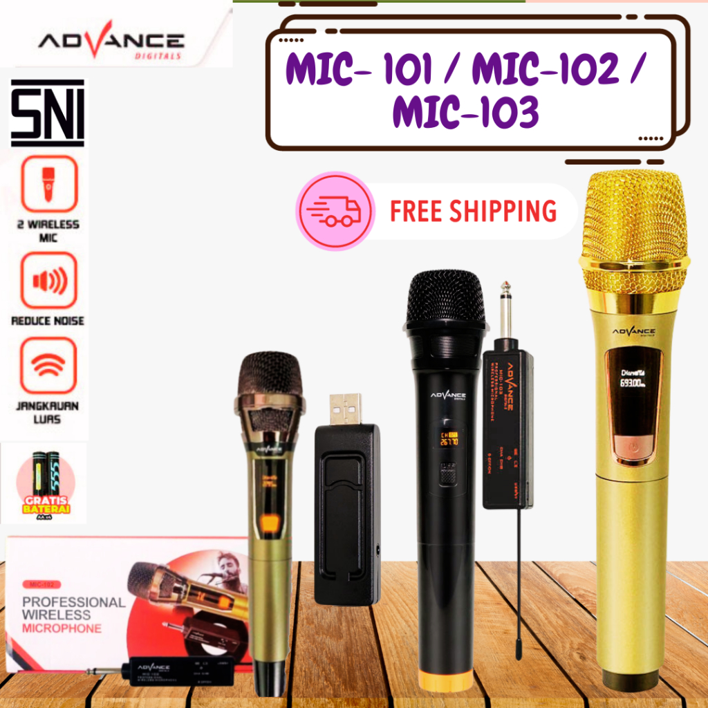 Advance MIC-103/MIC-102/MIC-101 Professional Microphone Mic Wireless 90ID Can be Charged / Guaranteed 1 year