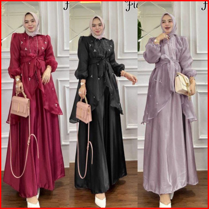 Gamis Pesta Organza - Gamis Fidelya Payet Lamaran Nikahan Tunangan