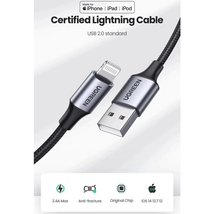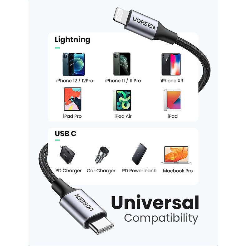 UGREEN Kabel Data iPhone iPad MFi USB Lightning Dan Type C To Lightning FAST Charging
