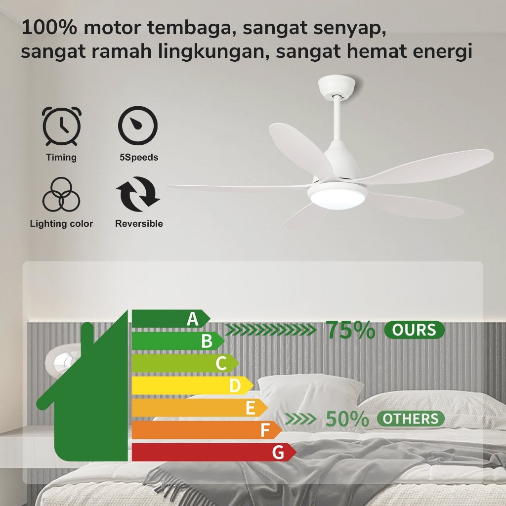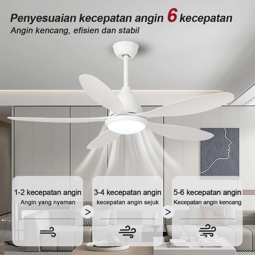 FENGYUN Lampu kipas langit-langit, 52/48 inci, 6/5 kecepatan, untuk ruang tamu dan kamar tidur
