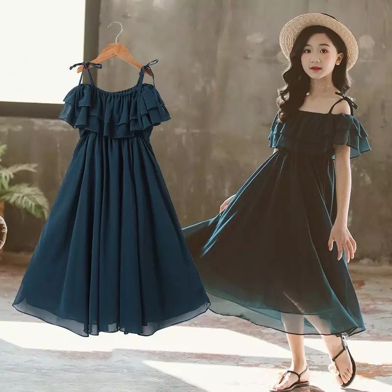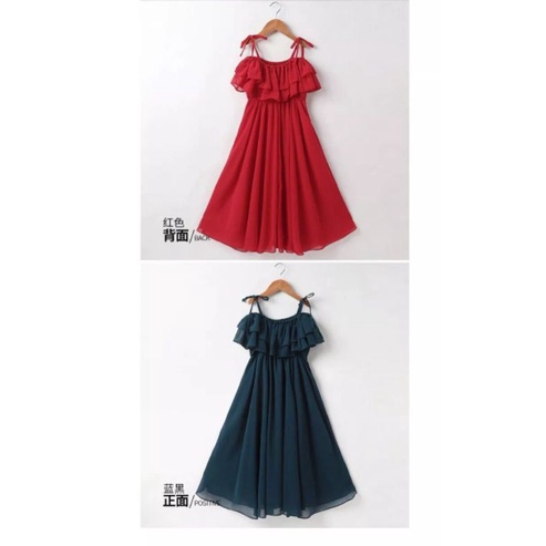 Midi Dress Anak Sabrina Angel Anak Off Shoulder Chiffon Sifon Tali Bahu Ceruty Usia 2-12 Tahun
