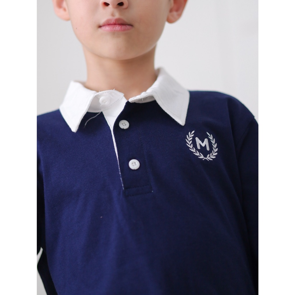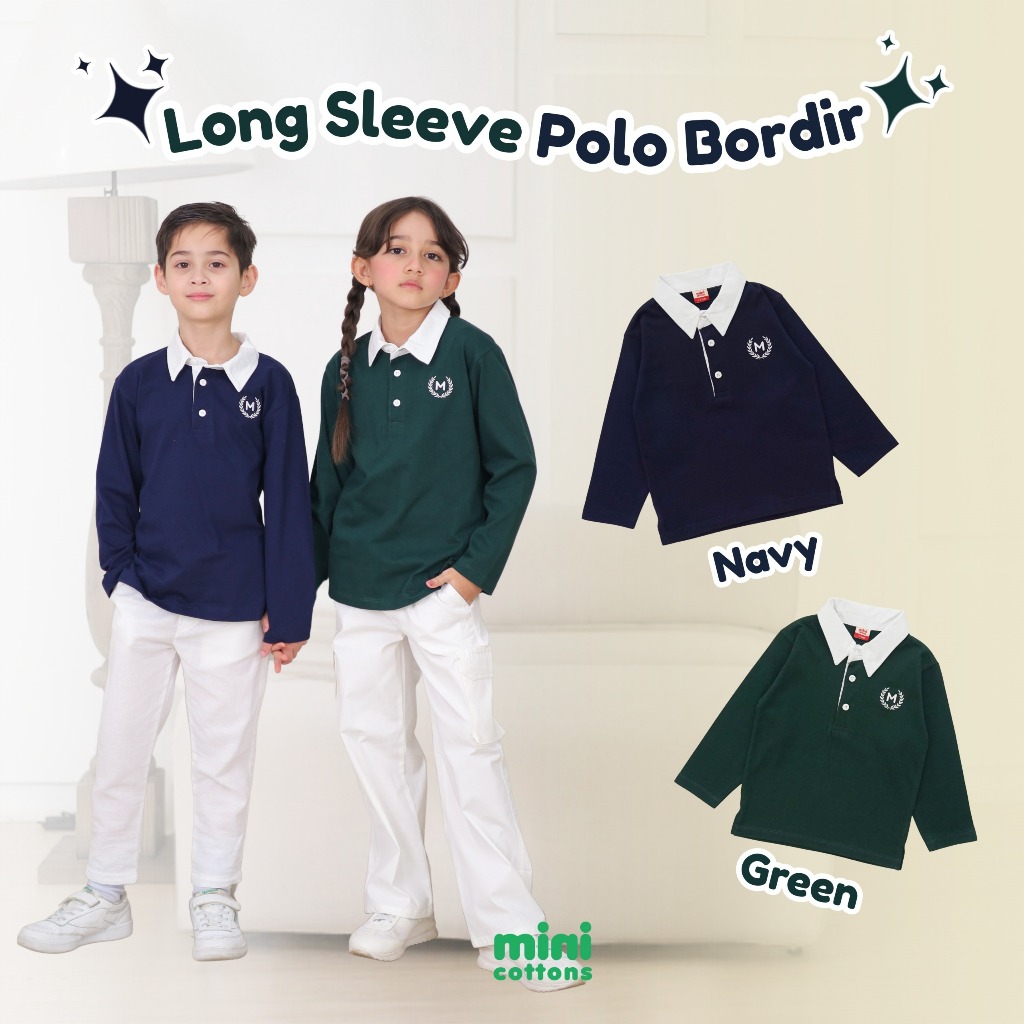Mini Cottons Long Sleeve Oxford Polo Tshirt Lengan Panjang Bordir Anak Unisex 1-12 Tahun