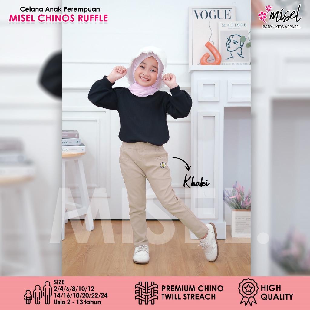 Misel Celana Chino Panjang Anak Perempuan Bordir Bunga Daisy Usia 2-13 Tahun