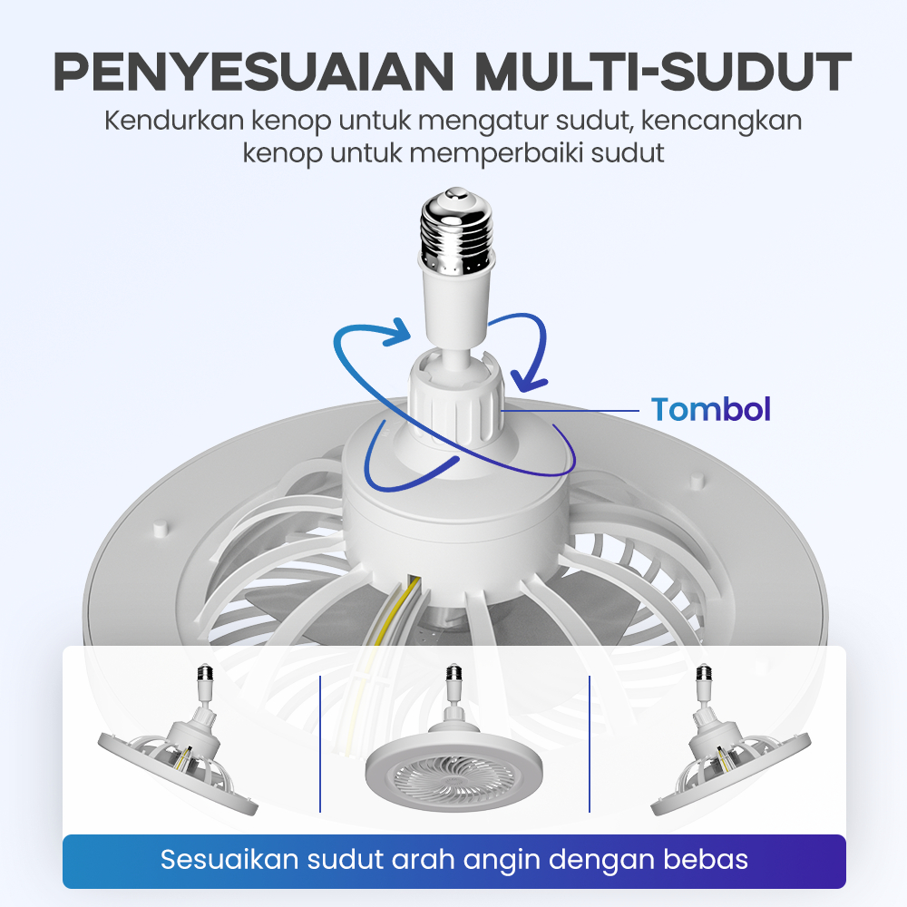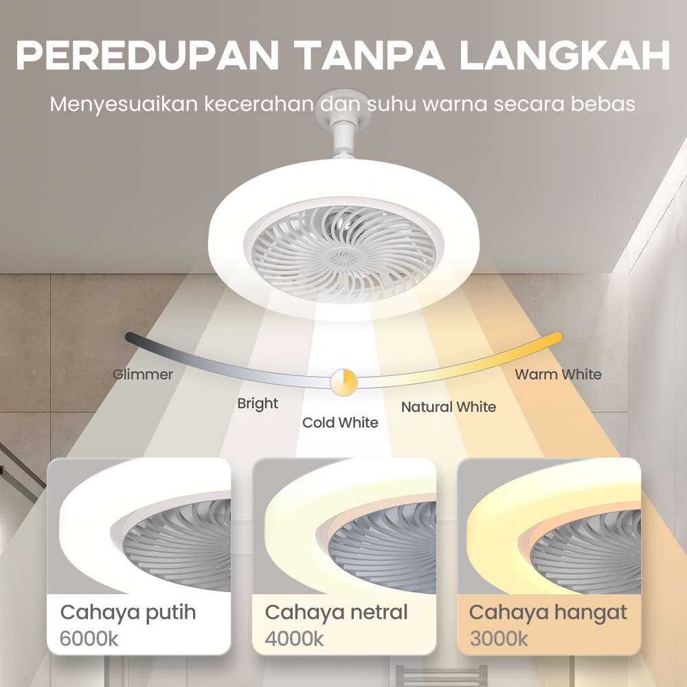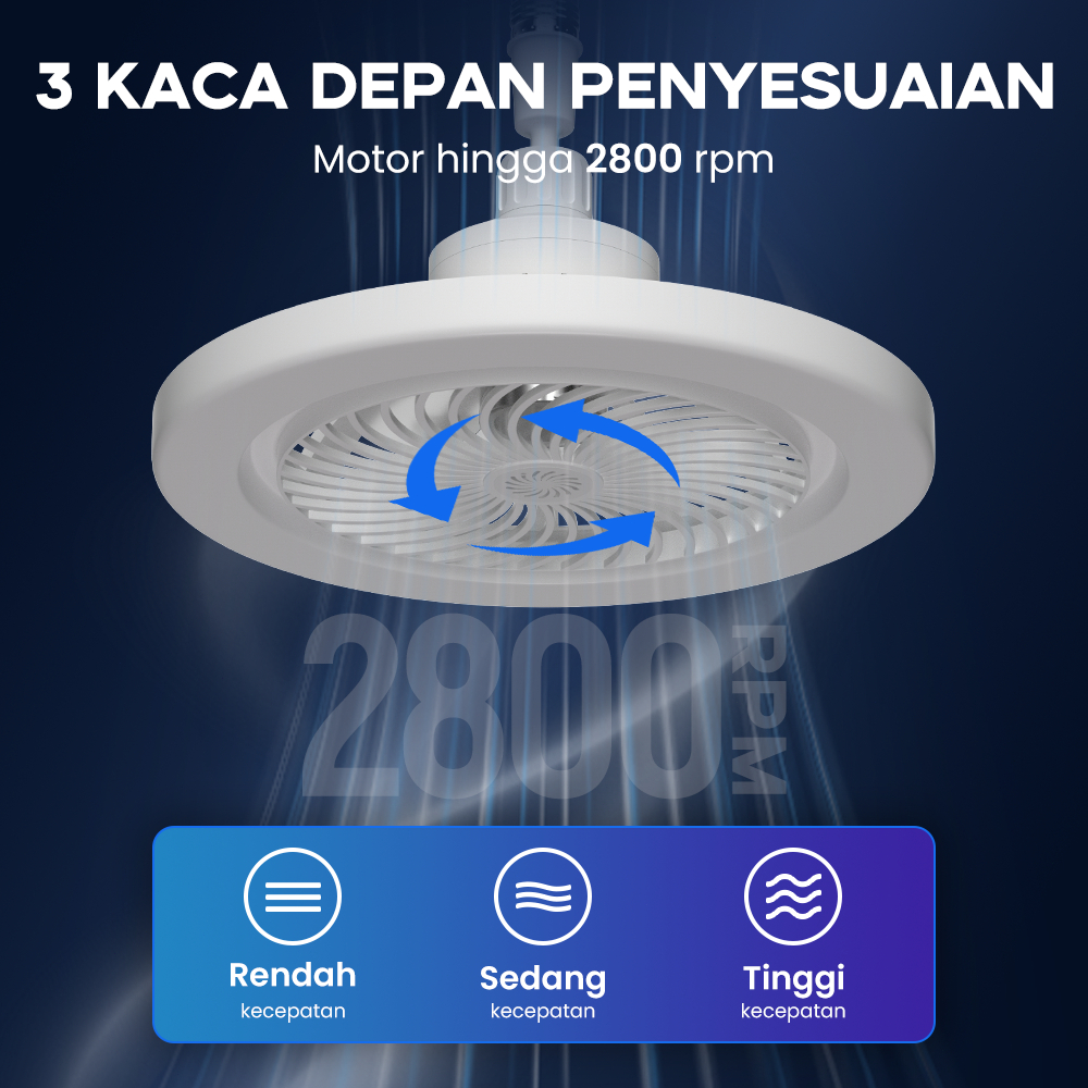 HAN RIVER 30W 2in1 Lampu Kipas Angin Plafon Lampu 3 Warna Remote Dapat Diatur 360° E27 Lamp Holder