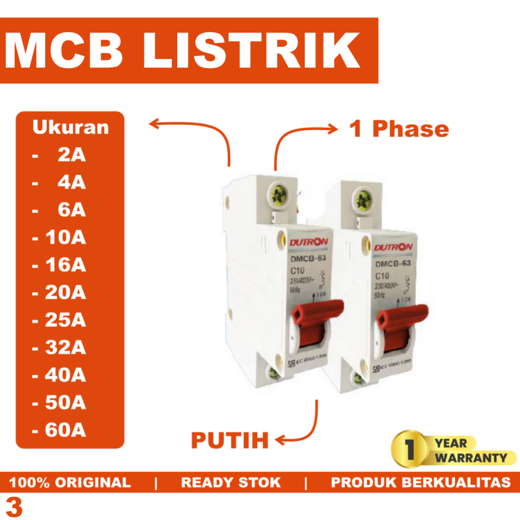 DUTRON MCB L15TR1K 10A 2A 4A 6A 16A 20A 25A 32A 40A 50A 63A 1 Phase 1Phase SNI 2 4 6 10 16 20 25 32 40 50 63 Amper