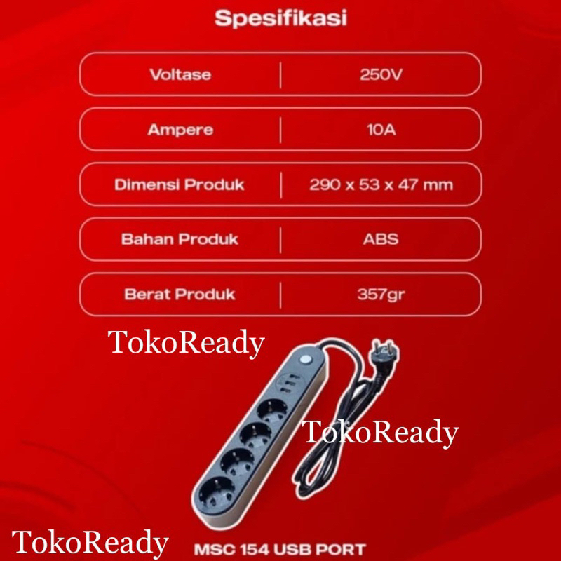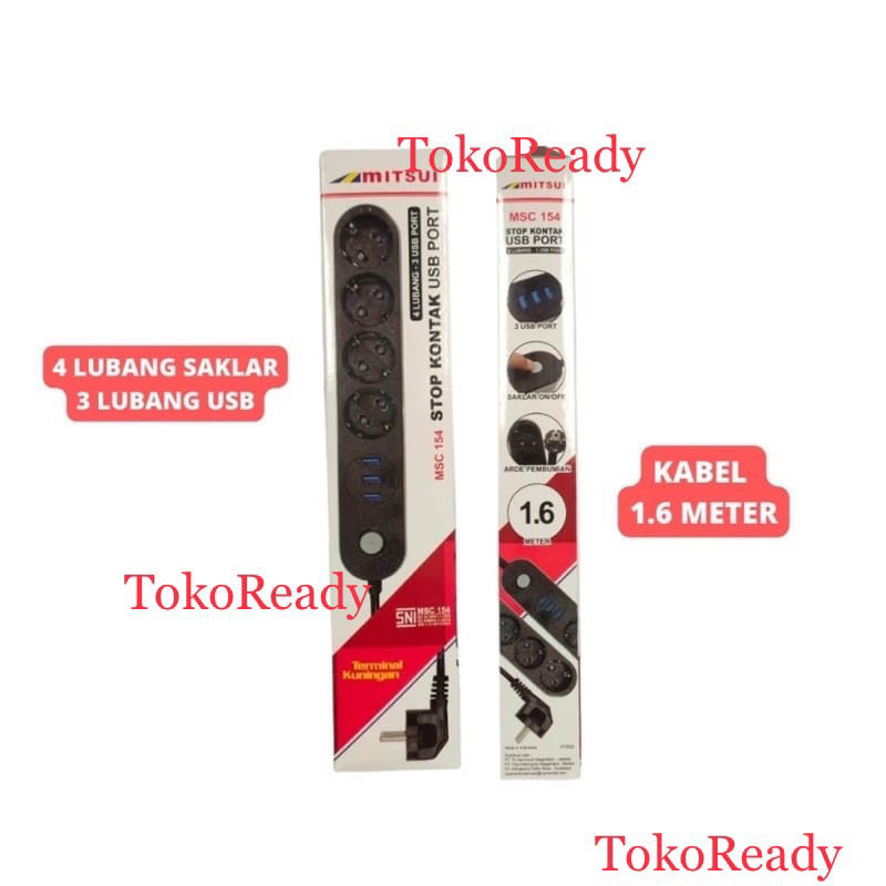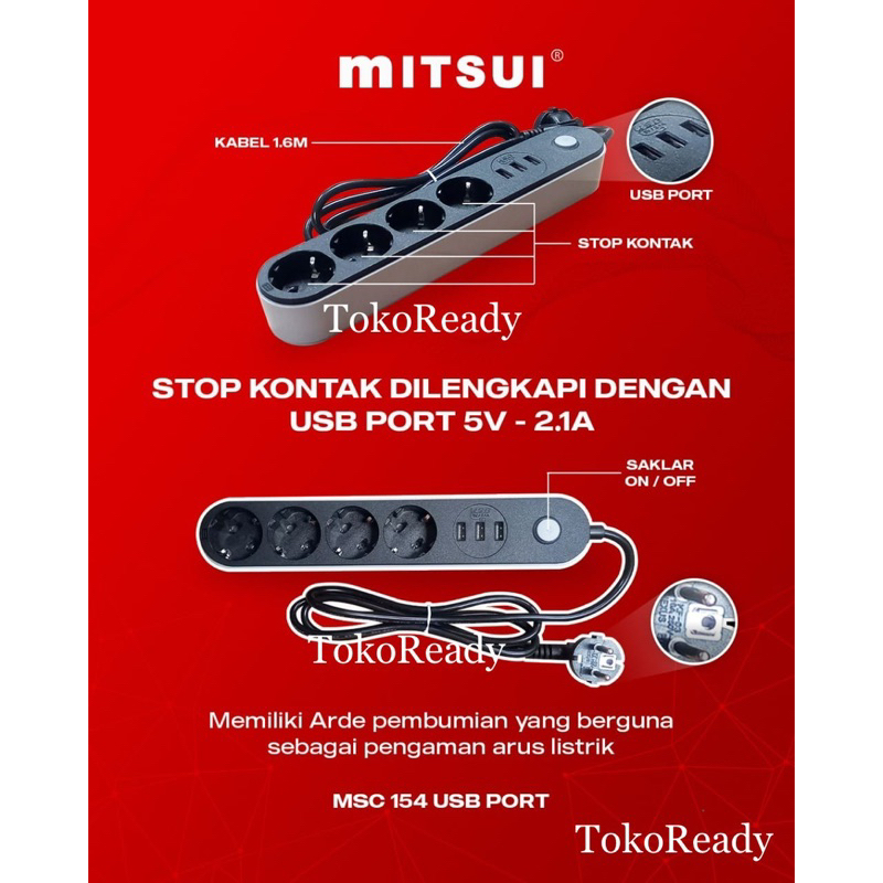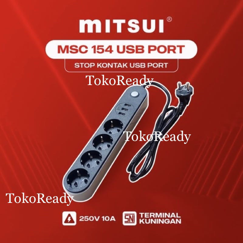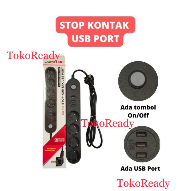 Stop kontak mitsui 4 lubang 3 USB port terminal kuningan SNI