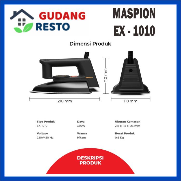 SETRIKA MASPION EX 1010 BB DRY IRON OTOMATIS GOSOKAN L15TR1K BAJU KERING AUTOMATIC IRON SETERIKA EX1010 EX1010BB