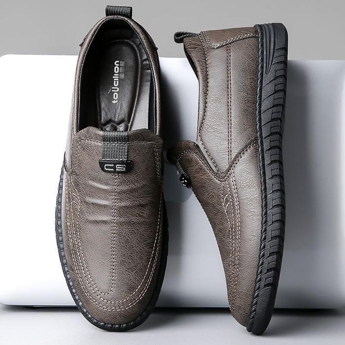 Leedoo Sepatu Slip On Pria Kulit Sepatu Pantofel Formal Sepatu Casual Sepatu Kerja Antiselip Hitam MC483