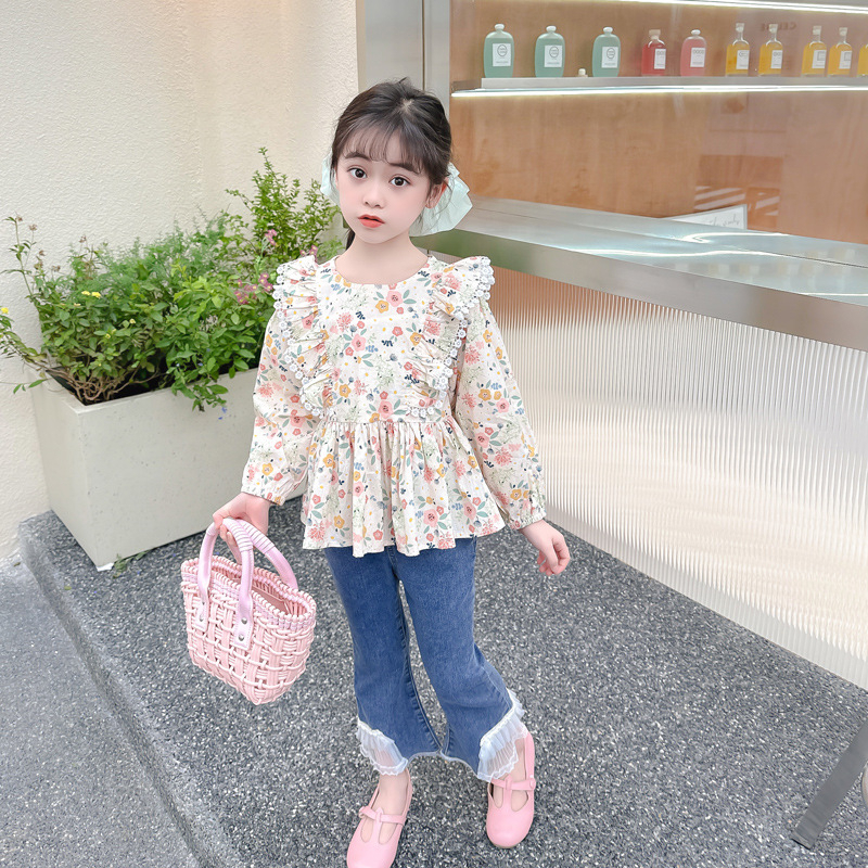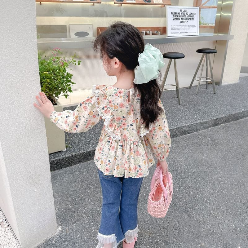 Rabbit Kids One Set Baju Anak Perempuan Katun Flower Celana Jeans Renda Elegan