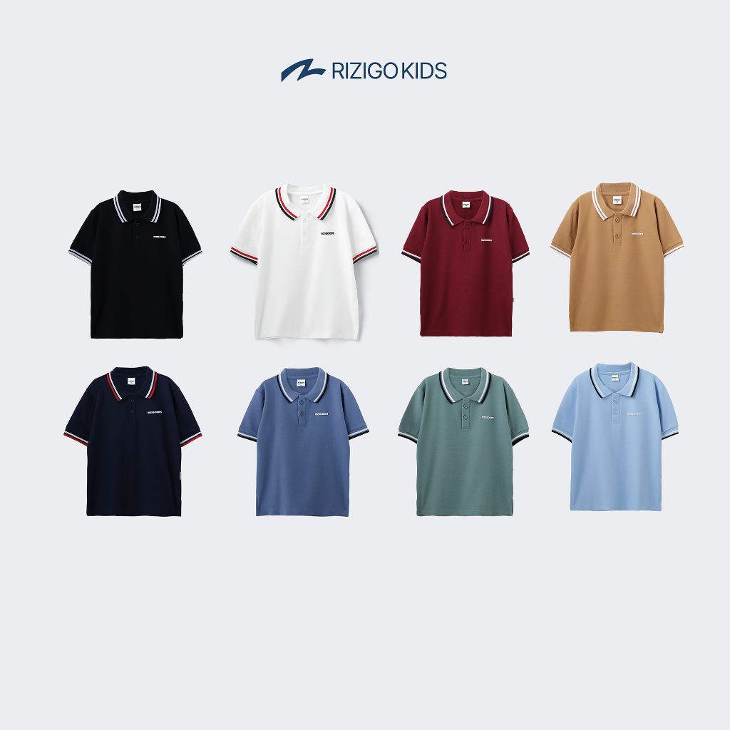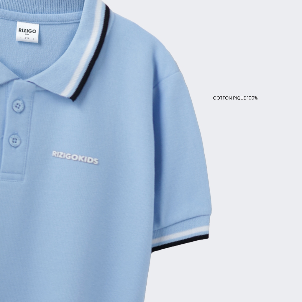 Rizigo Kids Baju Kaos Polo Anak Laki-Laki Stripe Cvc Pique 24S Lengan Pendek Adem Usia 2–12 Tahun
