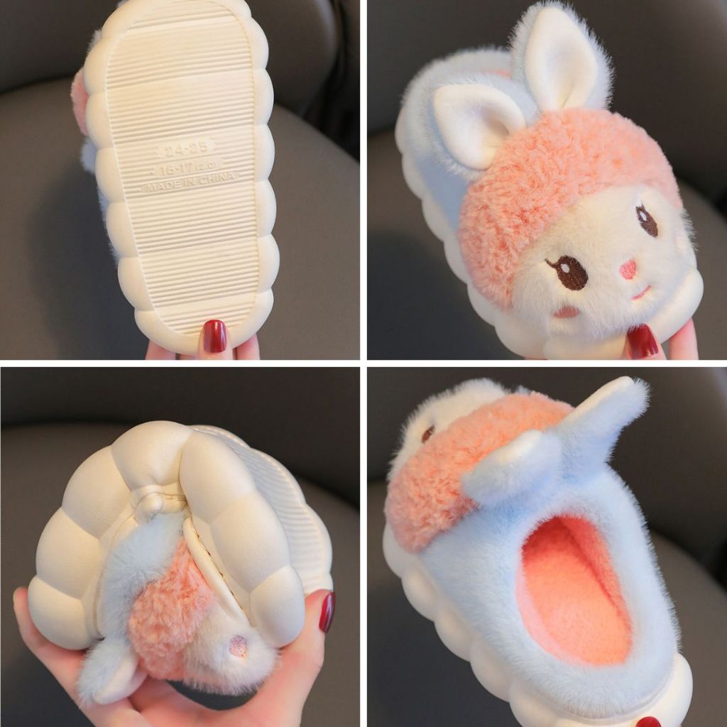 Sandal Sendal Selop Anak Rumah Bulu Boneka Unicorn Empuk Hangat Cewek Cowok Anti Slip Alas Karet