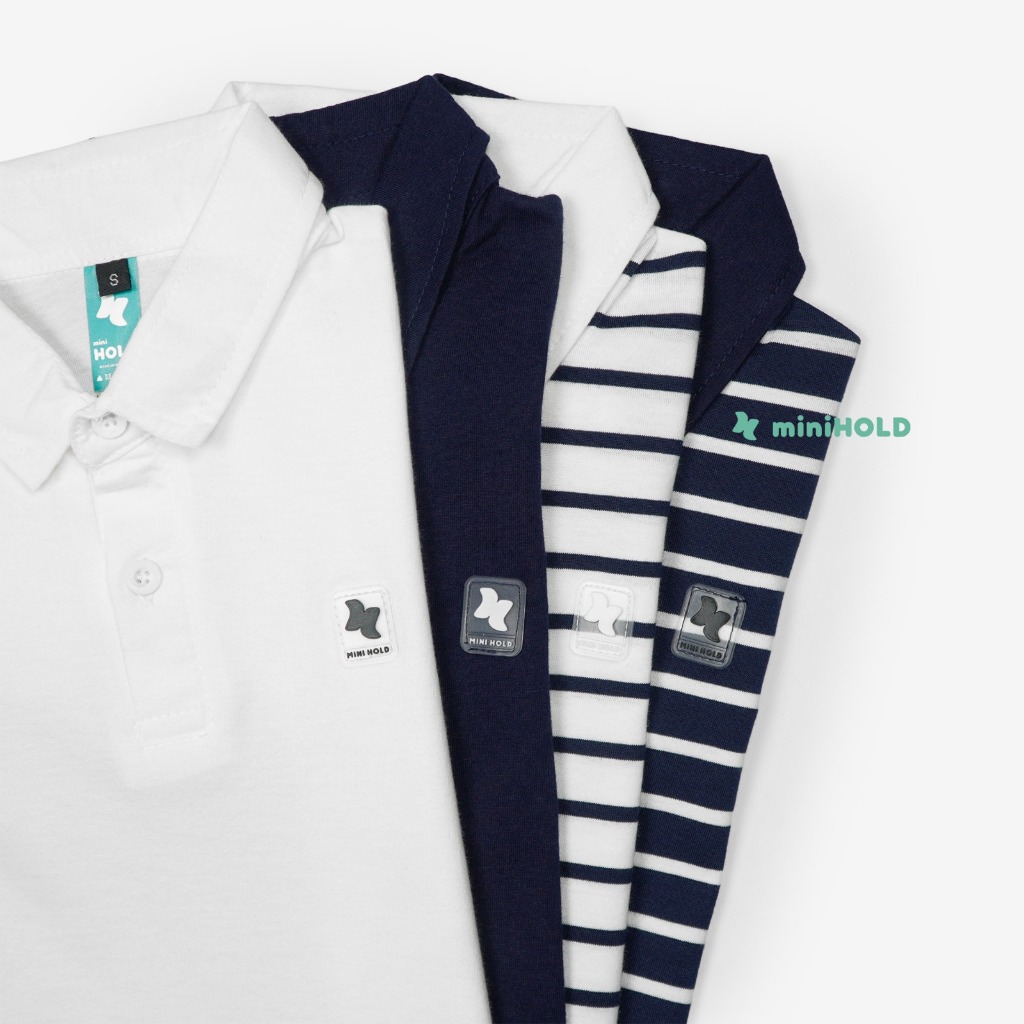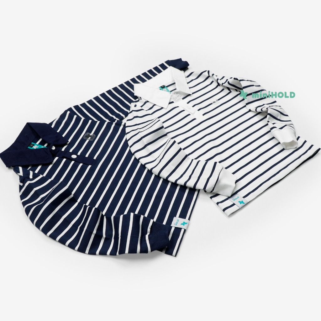 Minihold Kaos Kerah Lengan Panjang Salur Dan Kemeja Lengan Panjag Polos Cotton Combed 30S Anak Usia 1-12 Tahun