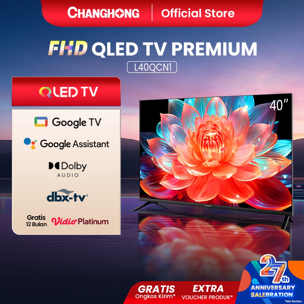 Changhong QLED TV 40 inch FHD Dolby Audio Google Play Netflix Youtube Bluetooth USB Google Assistant Smart TV Digital TV Free Vidio (L40QCN1)