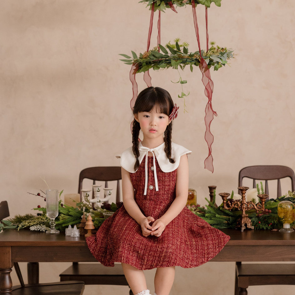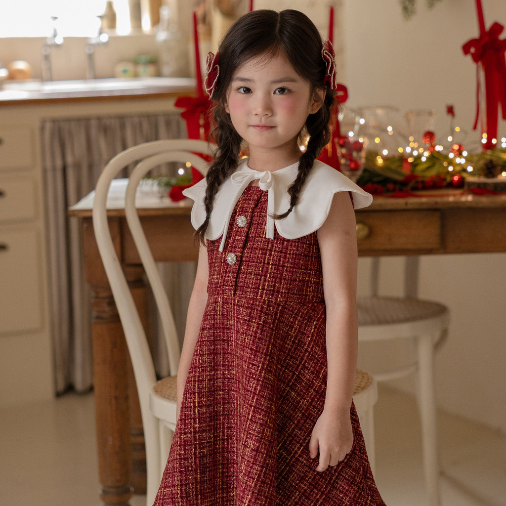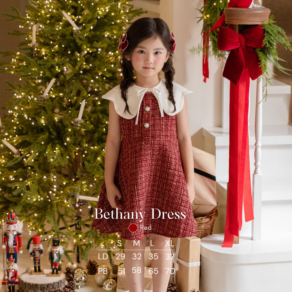 Moonjoy Bethany Tweed Dress Red - Dress Anak Perempuanl Merah Red Tweed Natal Christmas 2025