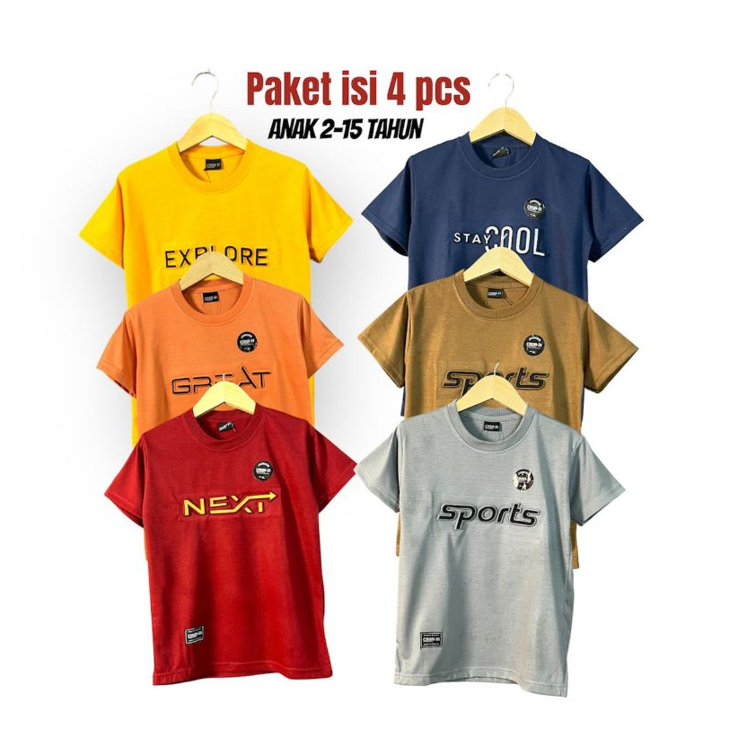 Paket 4 Pcs Kaos Anak Premium Emboss Bahan Semi Katun Adem Baju Anak Lengan Pendek Murah Kaos Harian