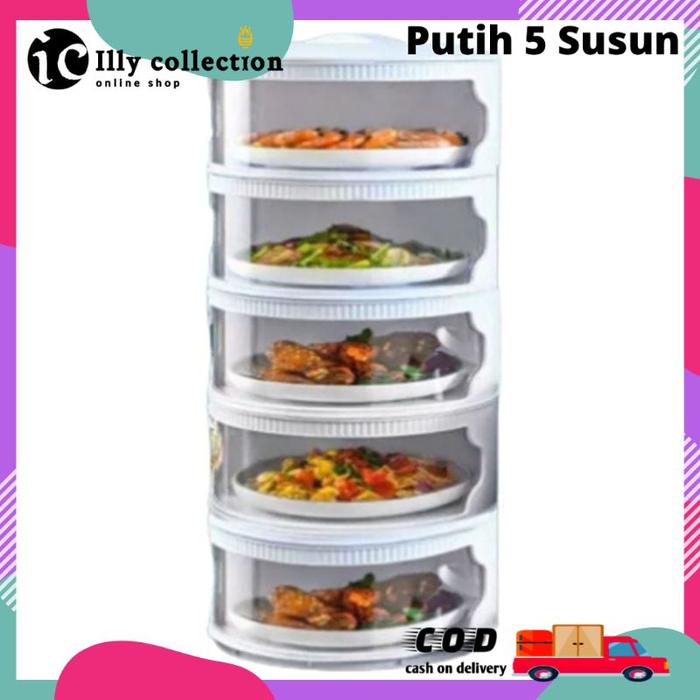 TUDUNG SAJI 543SUSUN FOOT COVER LAYER RAK TEMPAT PENYIMPANAN MAKANAN - PUTIH 5TINGKAT