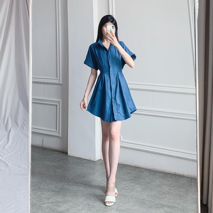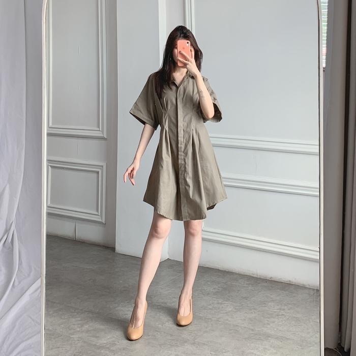 POSY MINI DRESS WHIRLY PLAIN BAHAN COTTON DRESS KARET SMOCK CASUAL KANCING - DARK BROWN, S-M