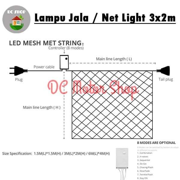 LAMPU NATAL HIAS LAMPU LED JALA JARING NET LIGHT 3X2 M 3 X 2 M - WHITE