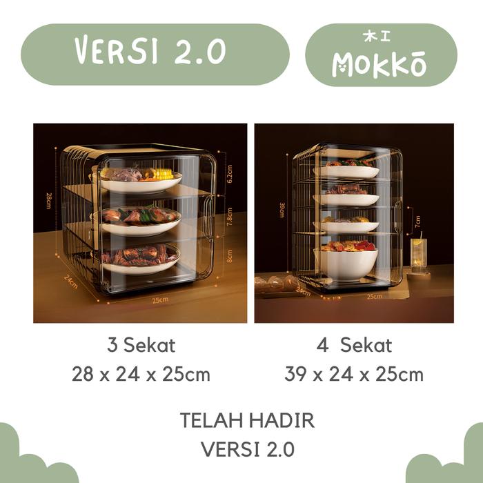 MOKKO - GYOZA KOTAK TUDUNG SAJI MAKANAN SERBAGUNA LEMARI PENYIMPAN LAUK TINGKAT PENYIMPANAN MAKANAN TUDUNG SAJI MAKAN SUSUN LEMARI TUDUNG SAJI LAUK ANTI DEBU MOK-185 - 4SKT V2 UPGRADE