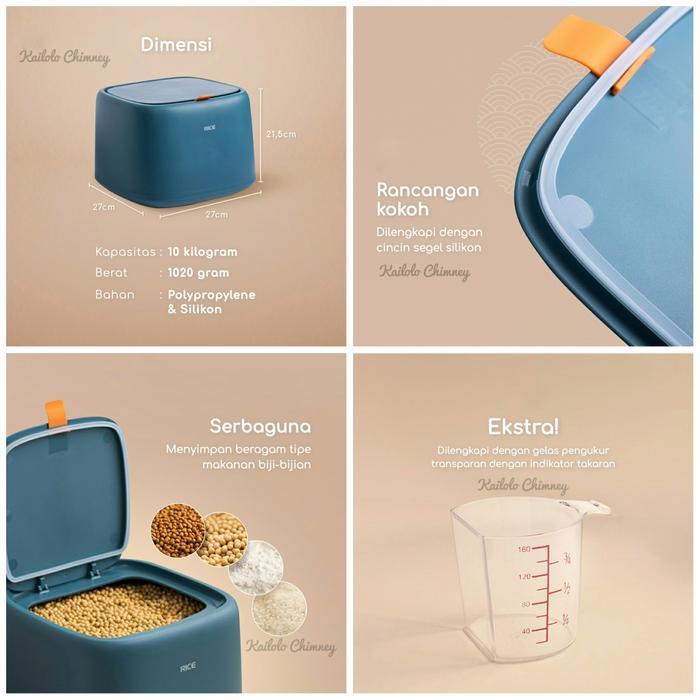 RICE BOX HOZU TEMPAT PENYIMPANAN BERAS 10 KG - PUTIH