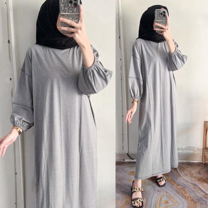 SIENA OVERDECK MIDI DRES BUSUI WANITA KEKINIAN BAHAN KAOS COMBED 24S - SIENA GREY, BUSUI